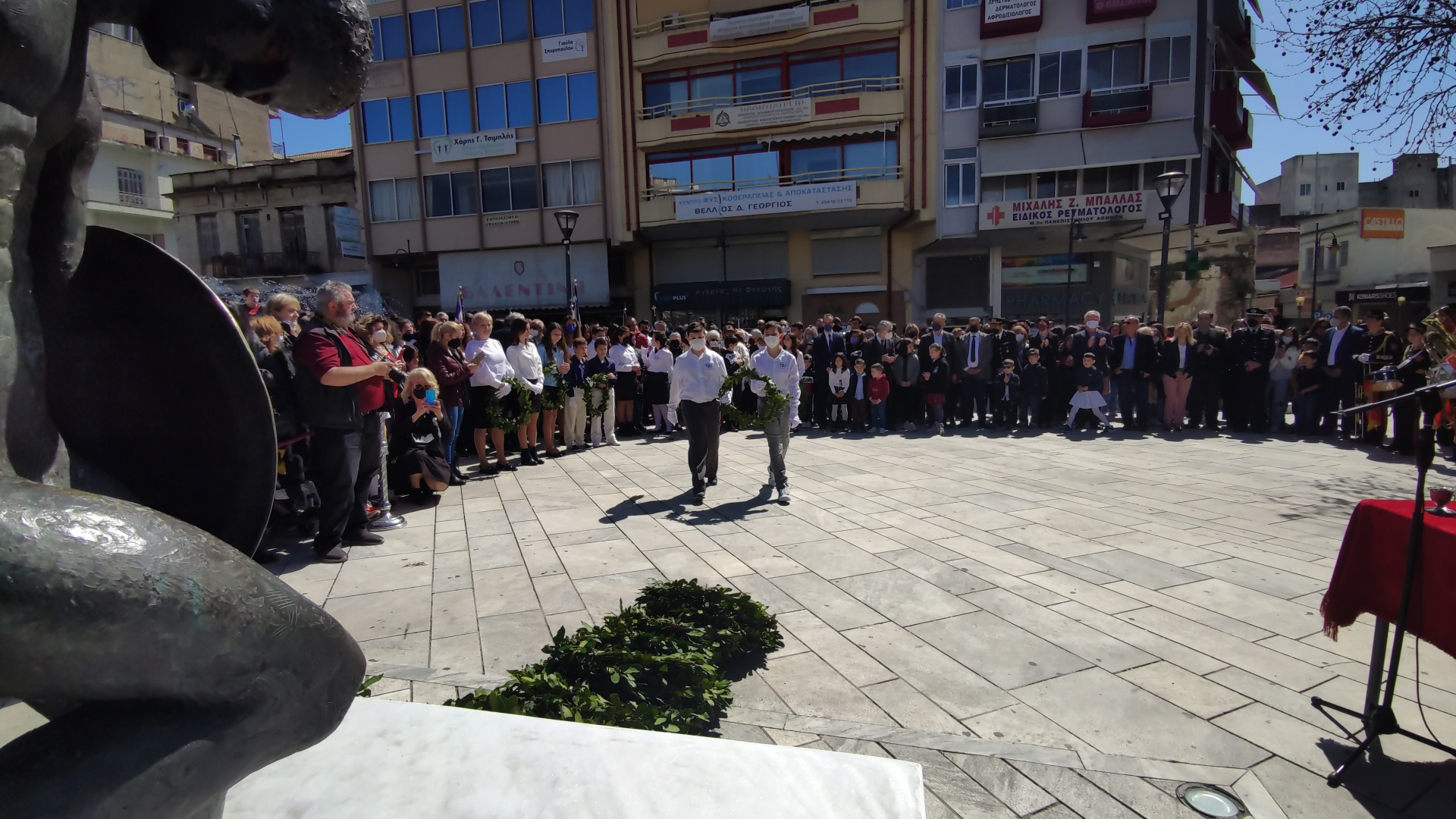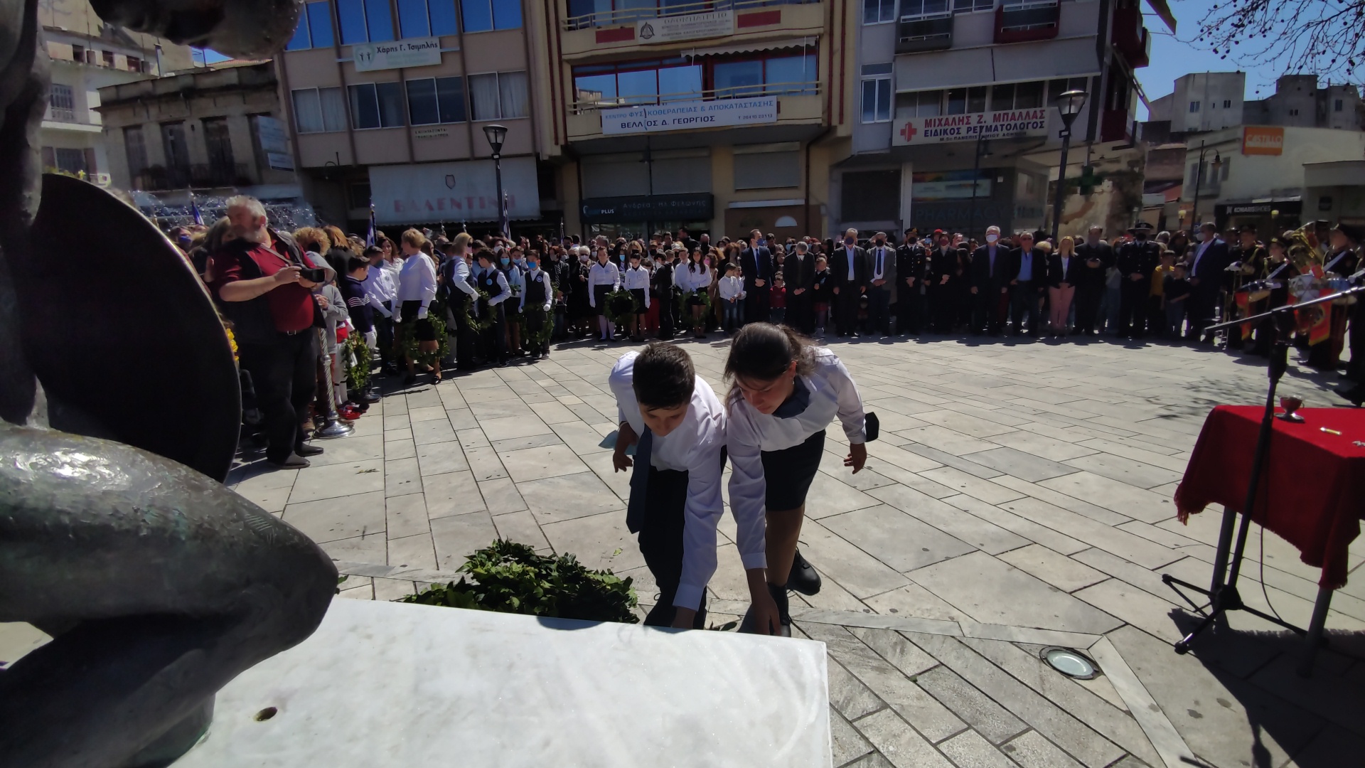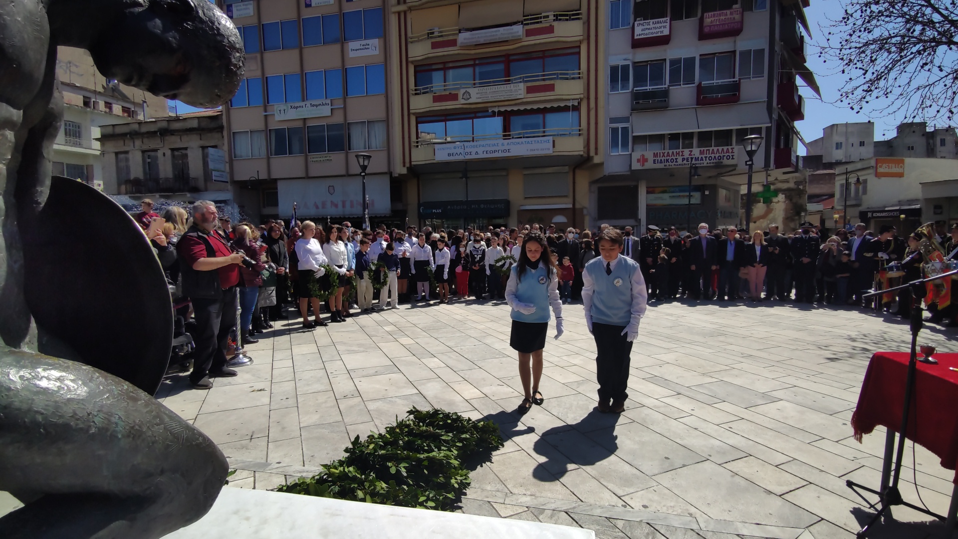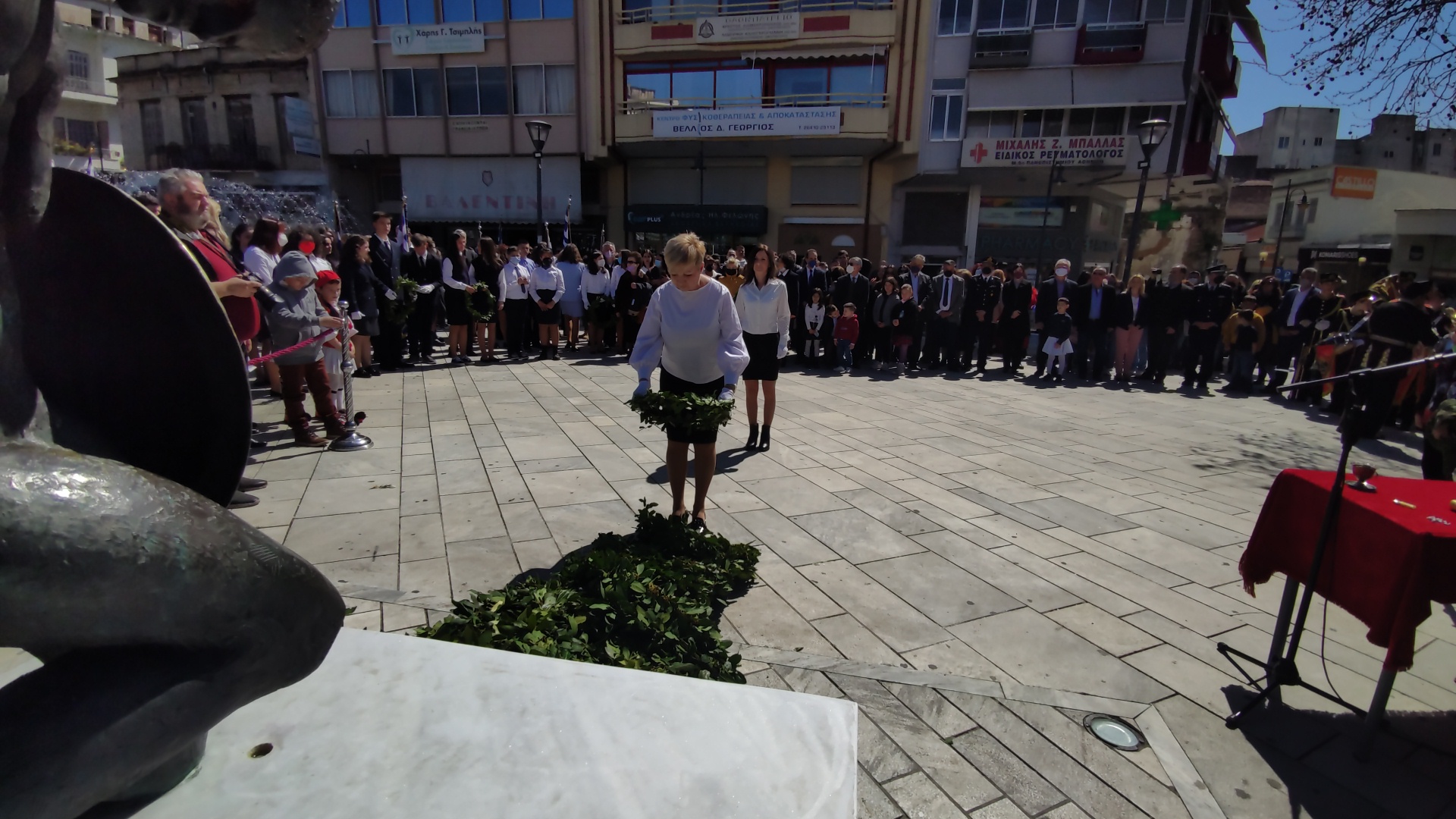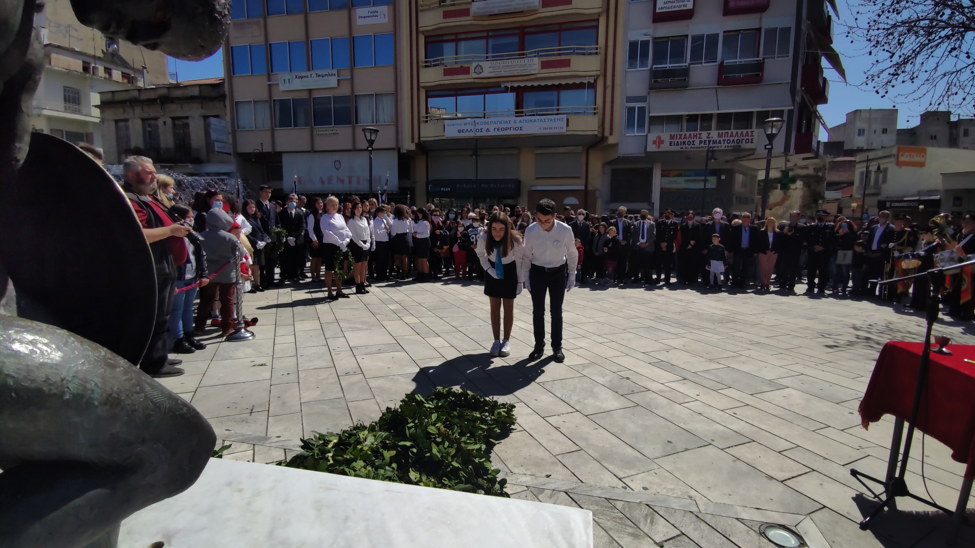 Στην πλατεία Δημάδη τελέστηκε η Επιμνημόσυνη δέηση και πραγματοποιήθηκε η κατάθεση στεφάνων από μαθητές σχολείων του Αγρινίου, Ειδικών Σχολείων, εκπροσώπων της μαθητικής κοινότητας και φορέων παρουσία στελεχών της Δημοτικής Αρχής και σωμάτων ασφαλείας.