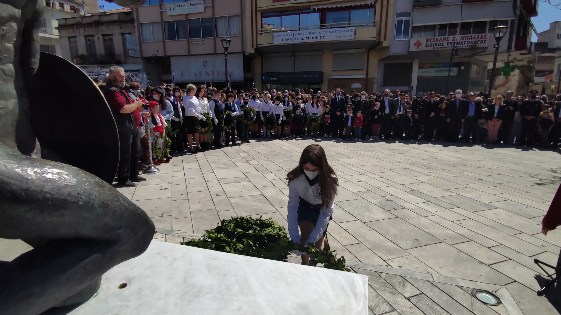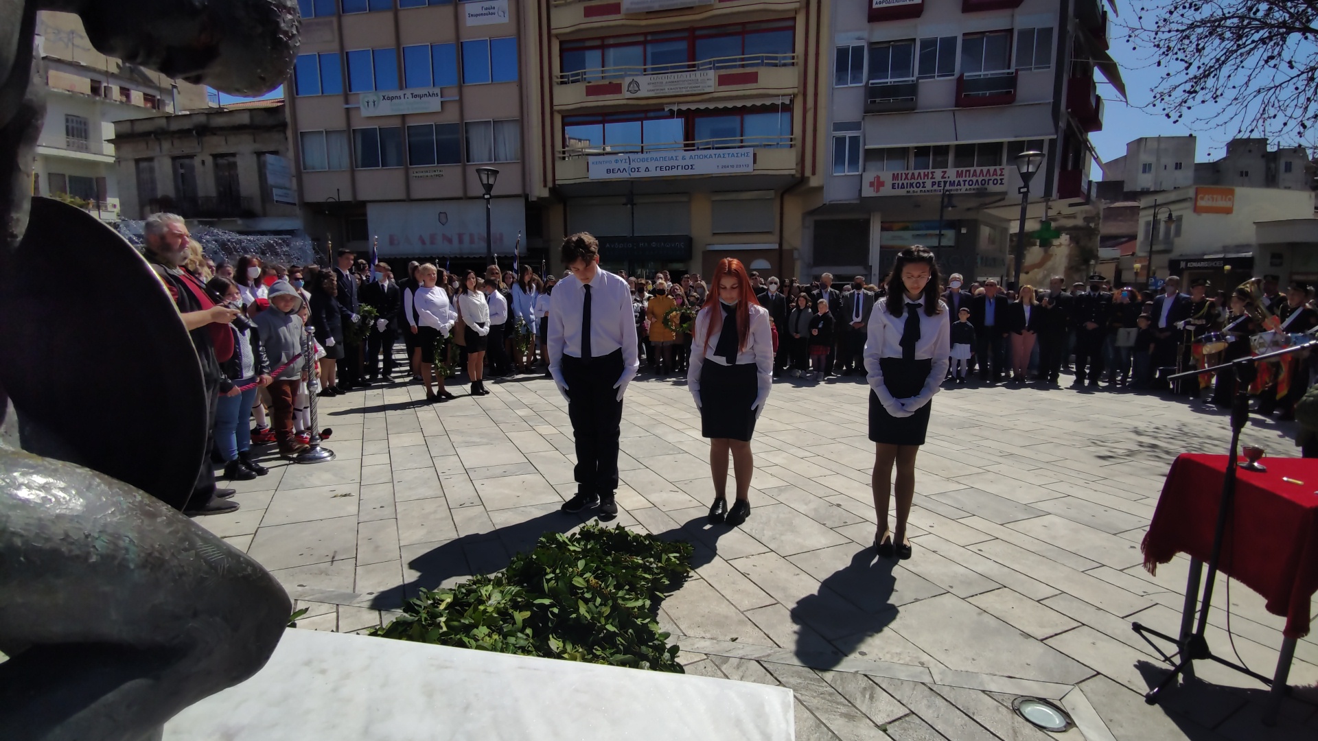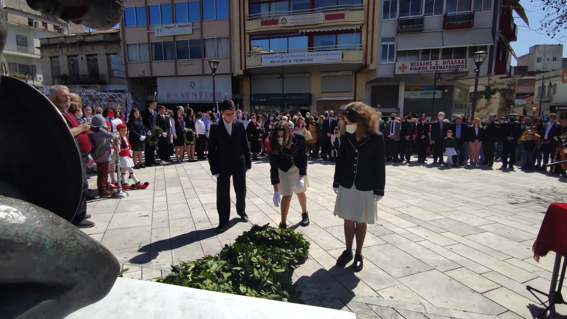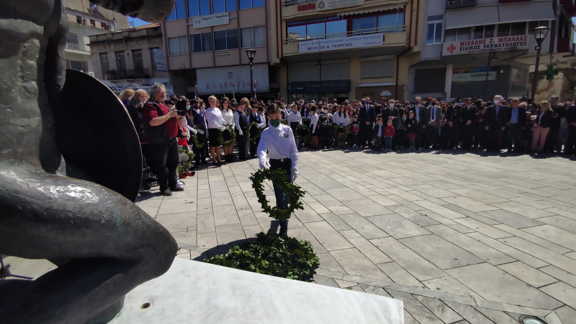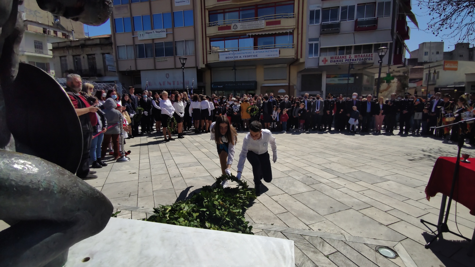 Στην πλατεία Δημάδη τελέστηκε η Επιμνημόσυνη δέηση και πραγματοποιήθηκε η κατάθεση στεφάνων από μαθητές σχολείων του Αγρινίου, Ειδικών Σχολείων, εκπροσώπων της μαθητικής κοινότητας και φορέων παρουσία στελεχών της Δημοτικής Αρχής και σωμάτων ασφαλείας.
