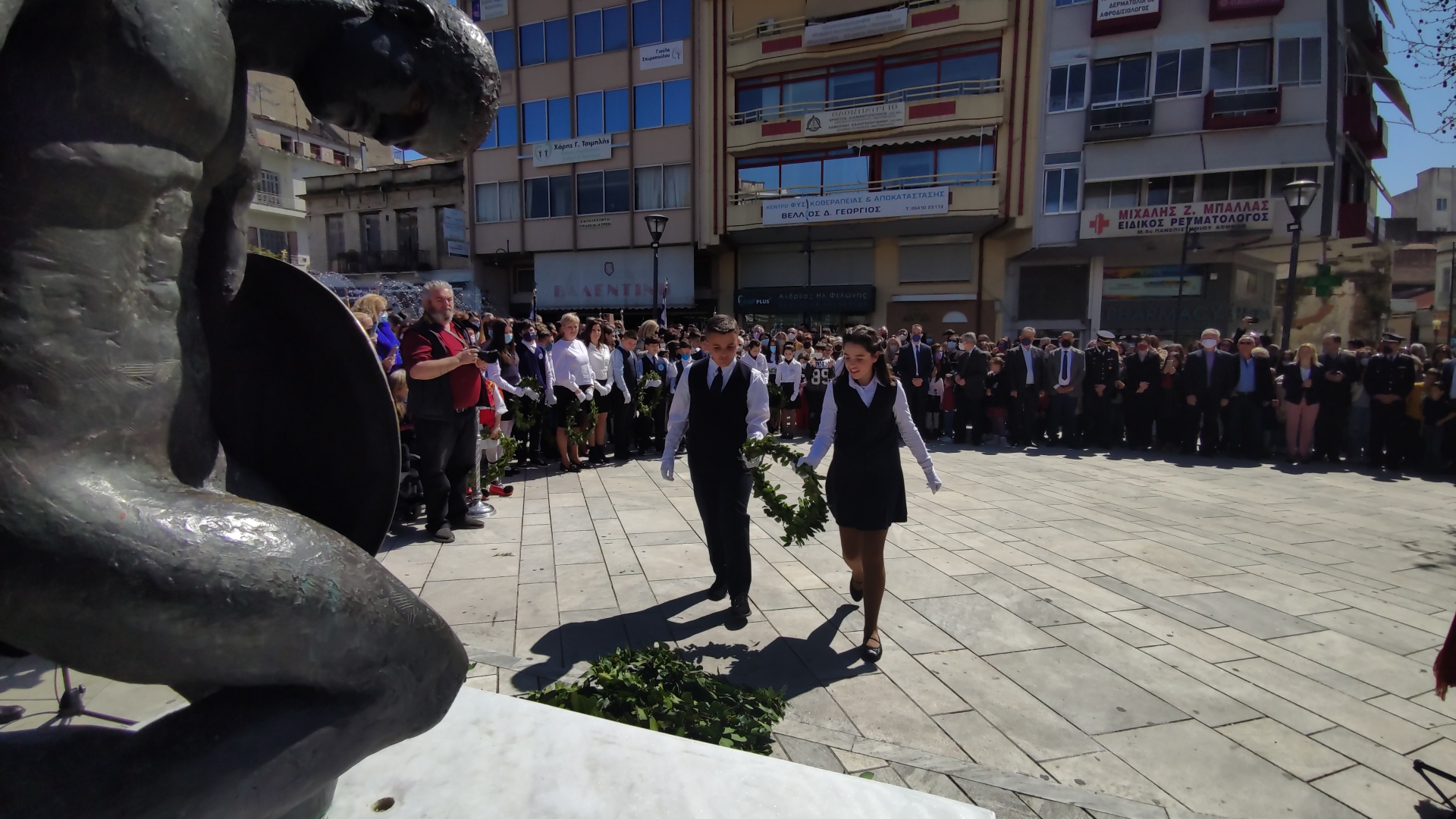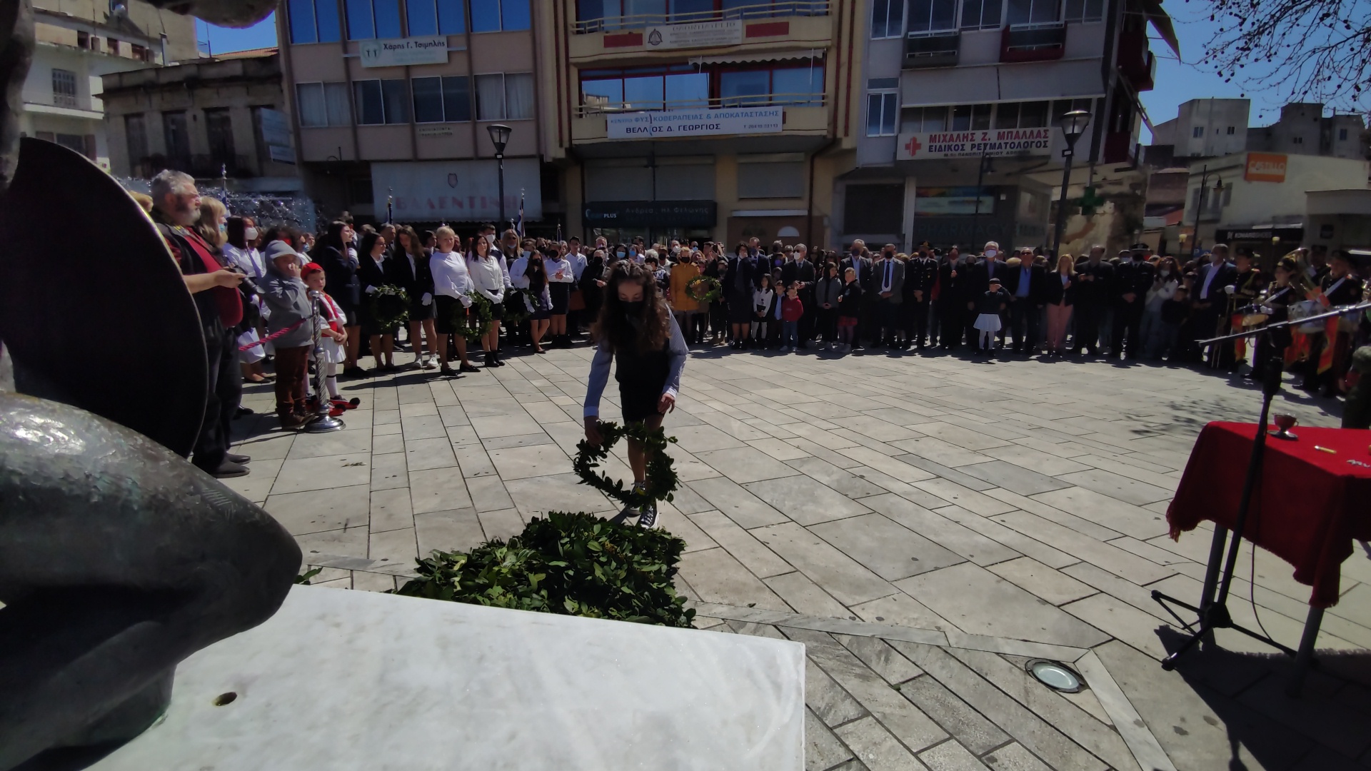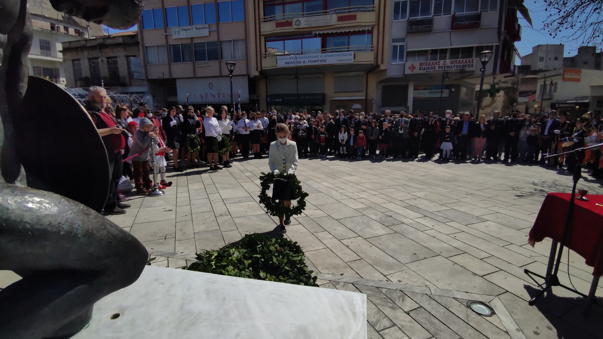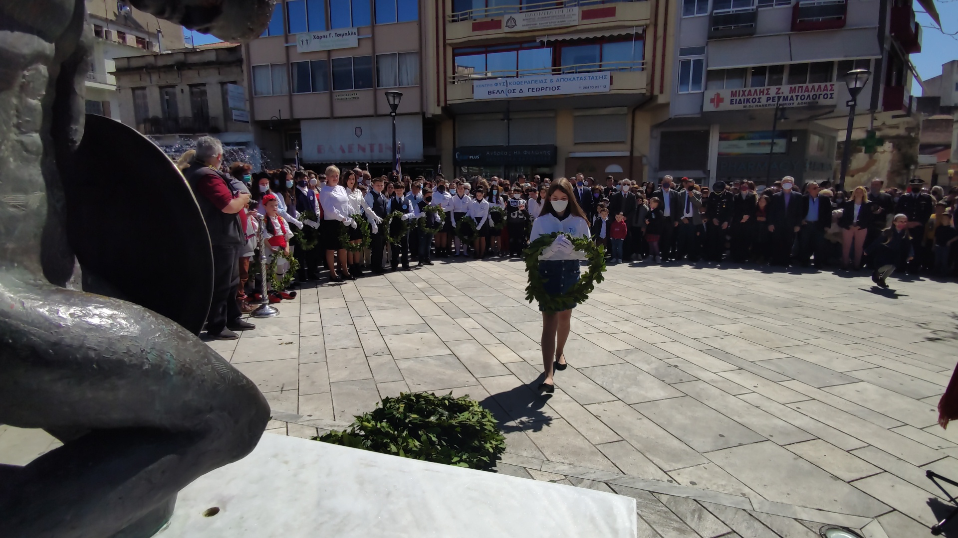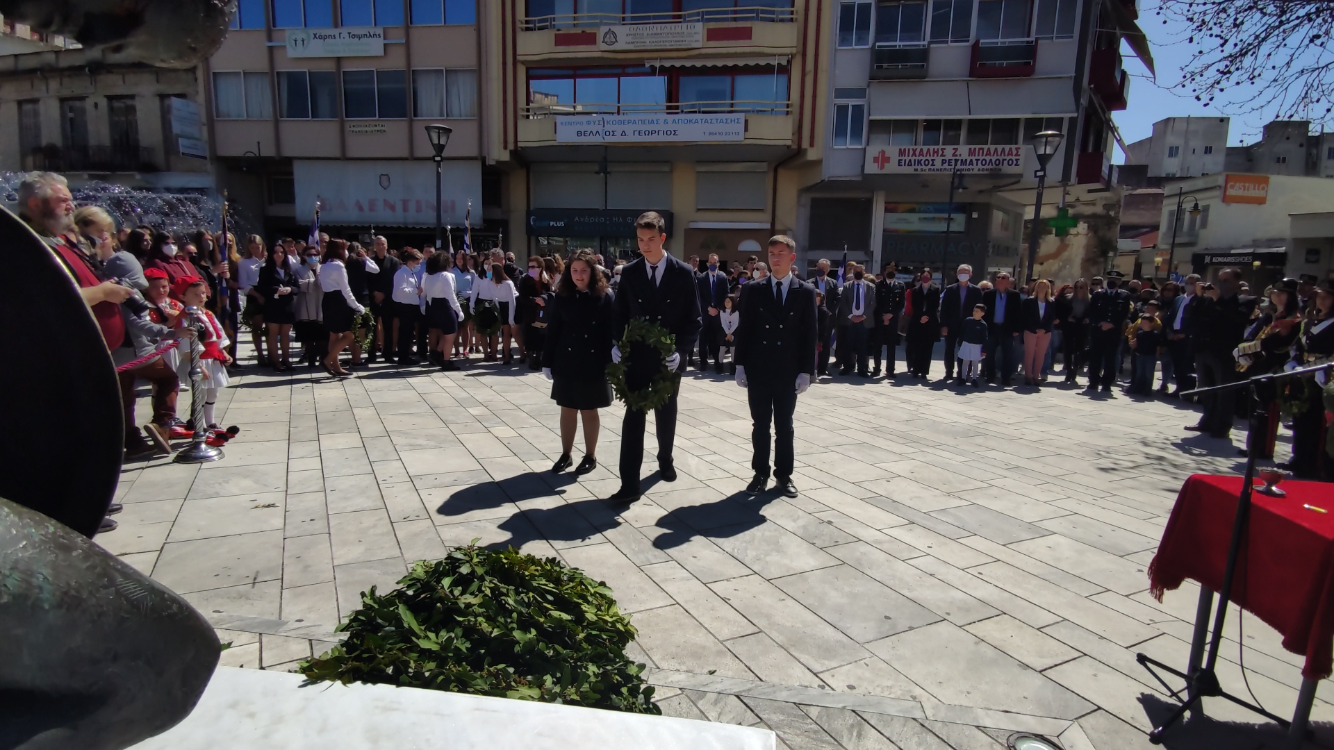 Στην πλατεία Δημάδη τελέστηκε η Επιμνημόσυνη δέηση και πραγματοποιήθηκε η κατάθεση στεφάνων από μαθητές σχολείων του Αγρινίου, Ειδικών Σχολείων, εκπροσώπων της μαθητικής κοινότητας και φορέων παρουσία στελεχών της Δημοτικής Αρχής και σωμάτων ασφαλείας.