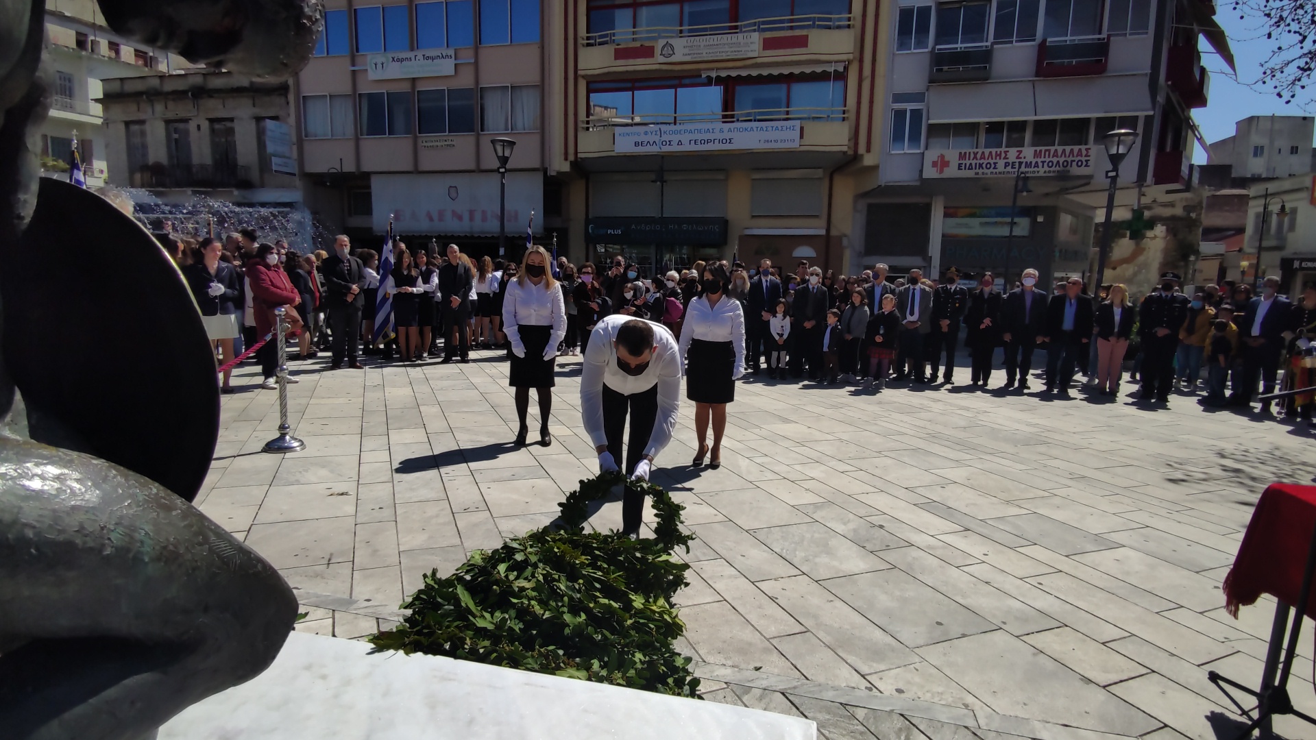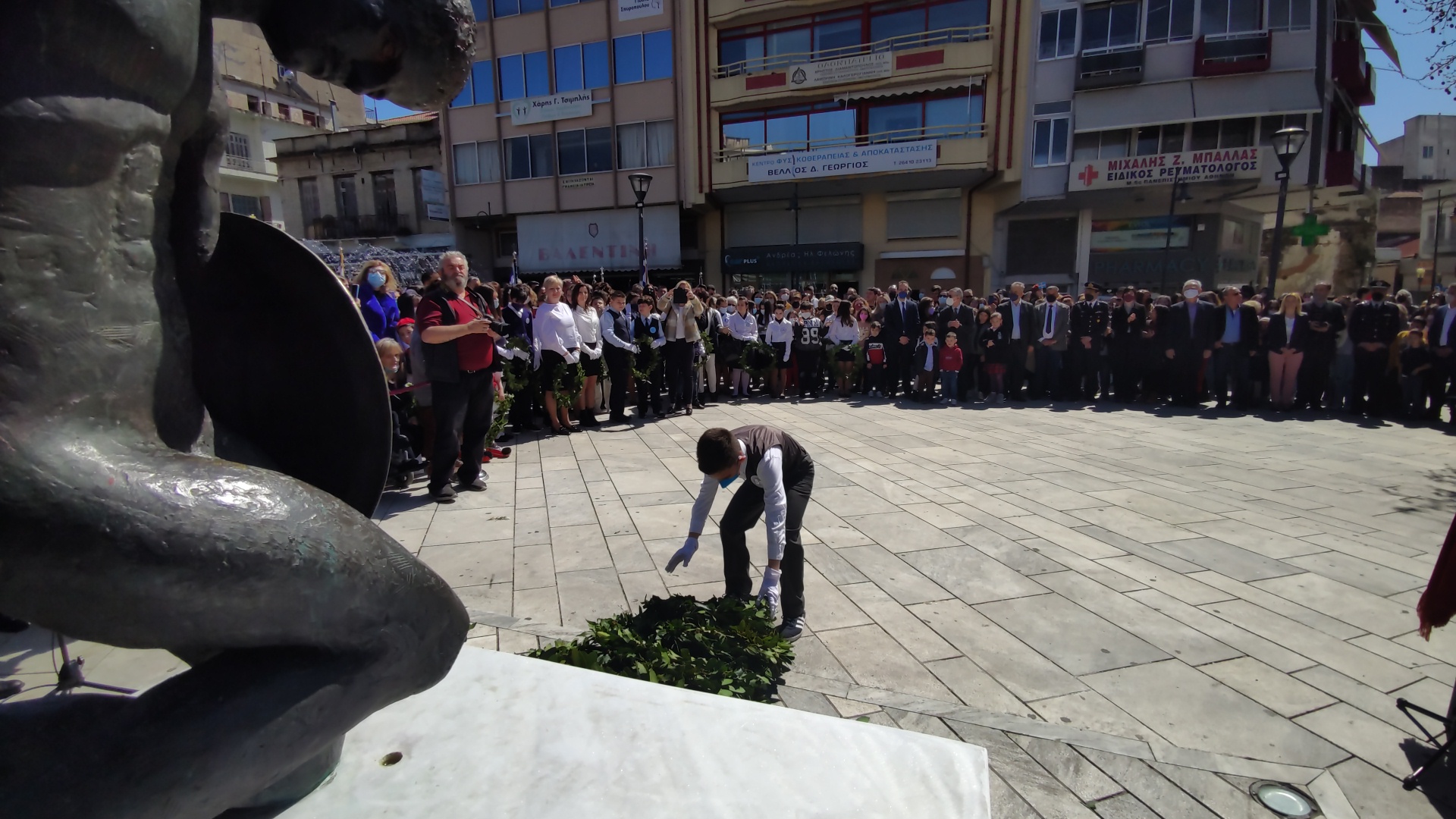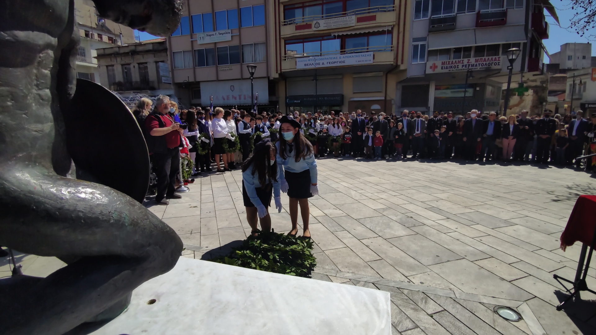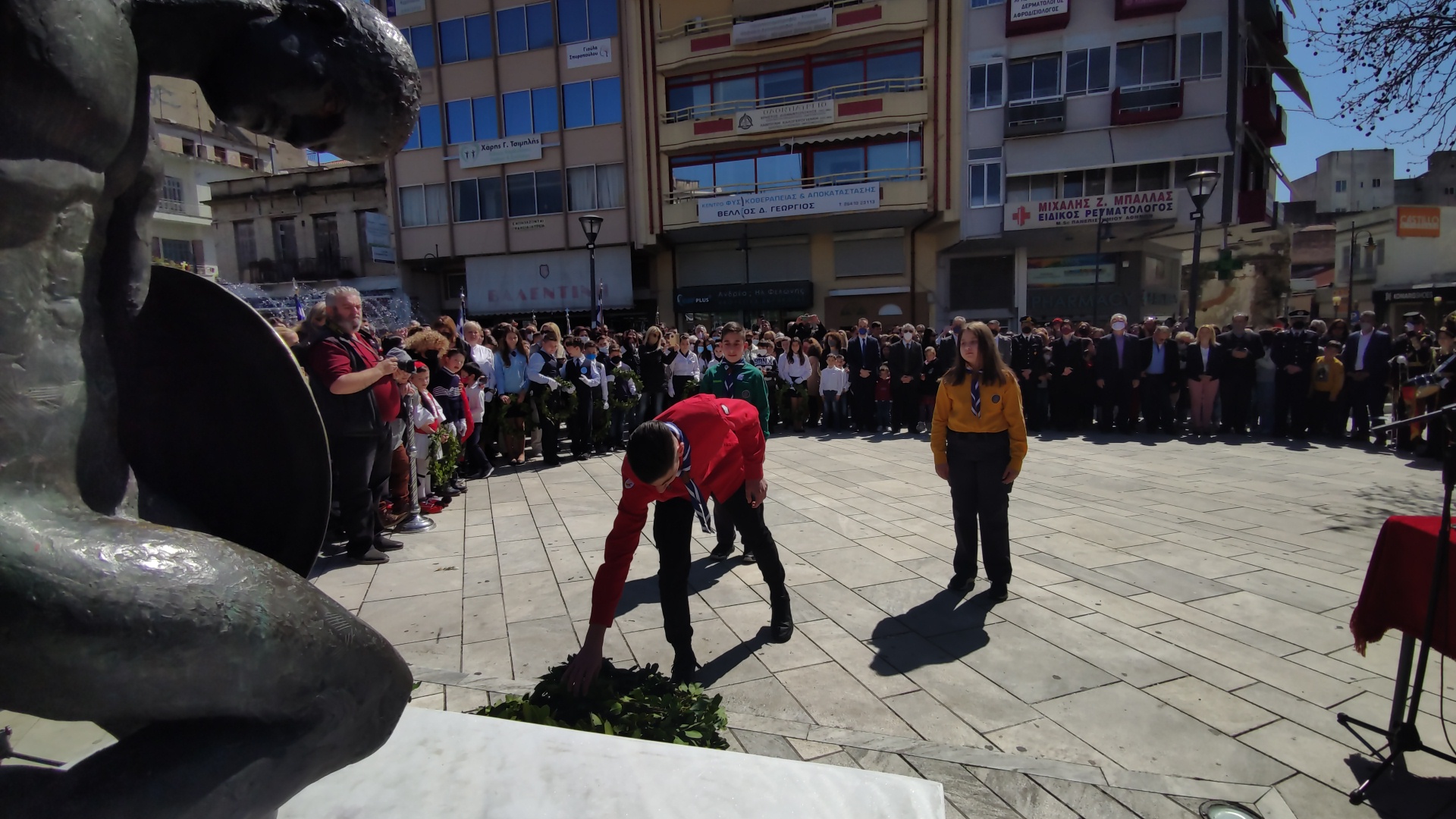 Στην πλατεία Δημάδη τελέστηκε η Επιμνημόσυνη δέηση και πραγματοποιήθηκε η κατάθεση στεφάνων από μαθητές σχολείων του Αγρινίου, Ειδικών Σχολείων, εκπροσώπων της μαθητικής κοινότητας και φορέων παρουσία στελεχών της Δημοτικής Αρχής και σωμάτων ασφαλείας.