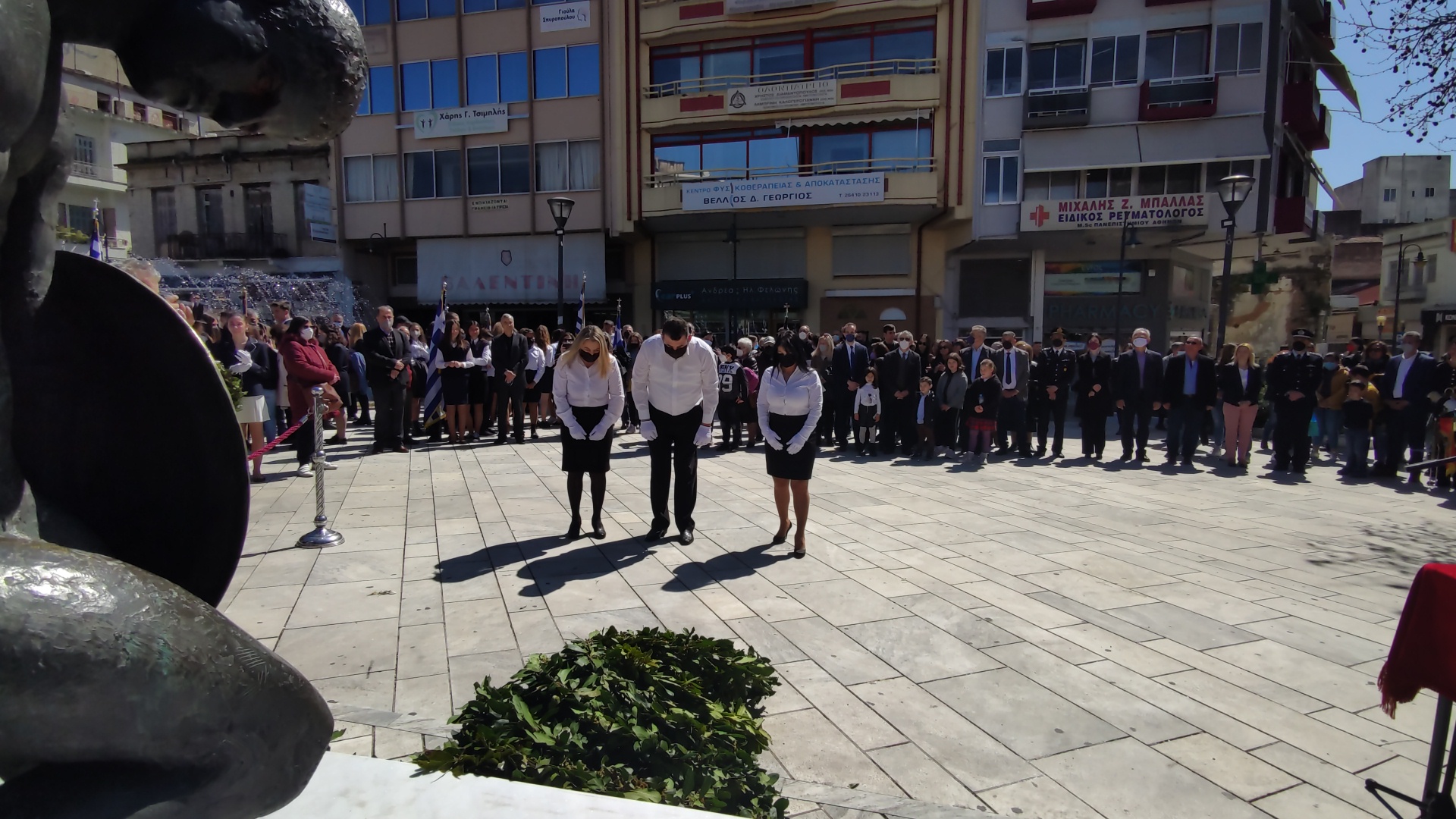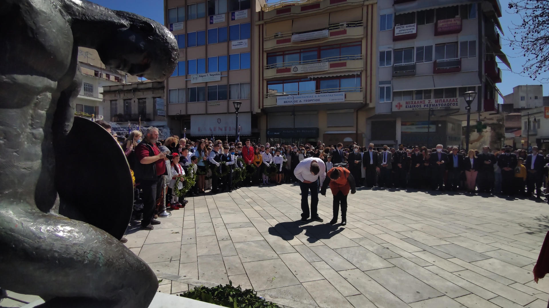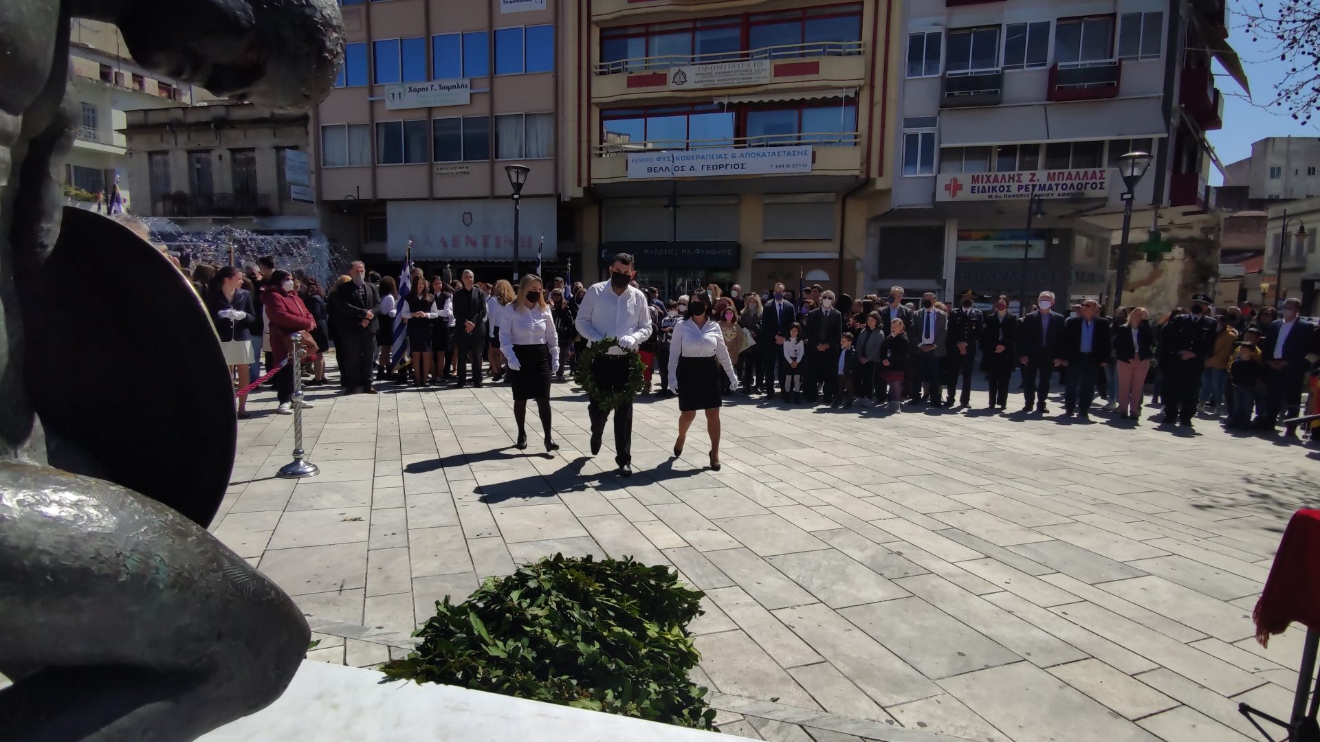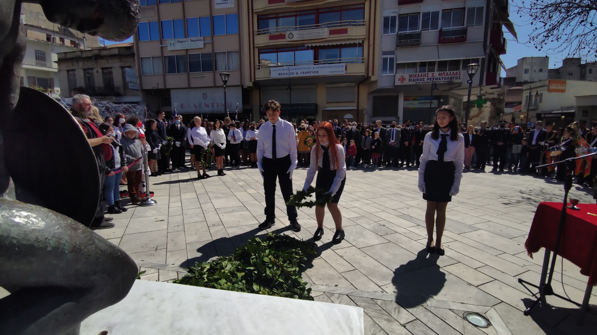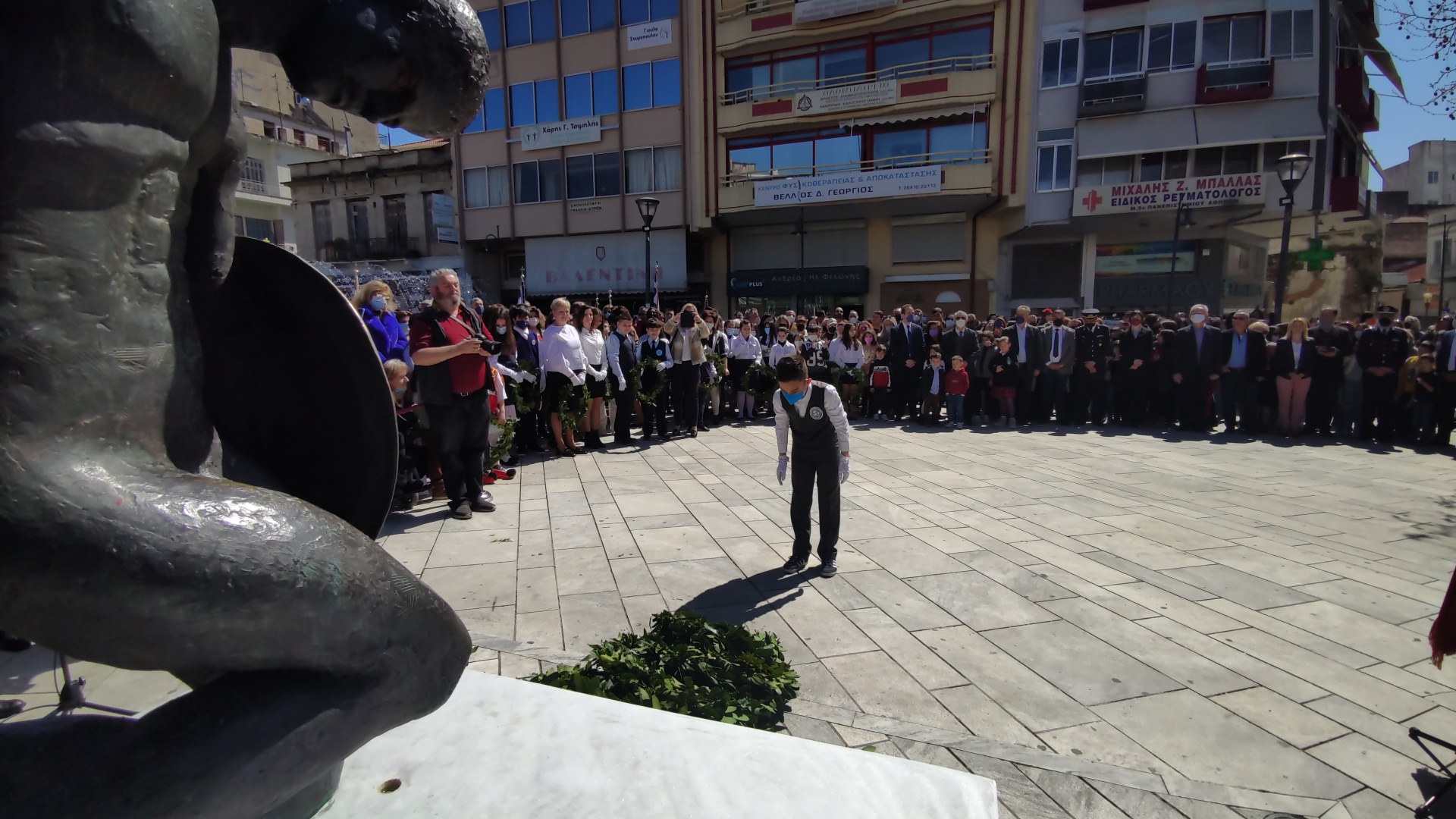 Στην πλατεία Δημάδη τελέστηκε η Επιμνημόσυνη δέηση και πραγματοποιήθηκε η κατάθεση στεφάνων από μαθητές σχολείων του Αγρινίου, Ειδικών Σχολείων, εκπροσώπων της μαθητικής κοινότητας και φορέων παρουσία στελεχών της Δημοτικής Αρχής και σωμάτων ασφαλείας.