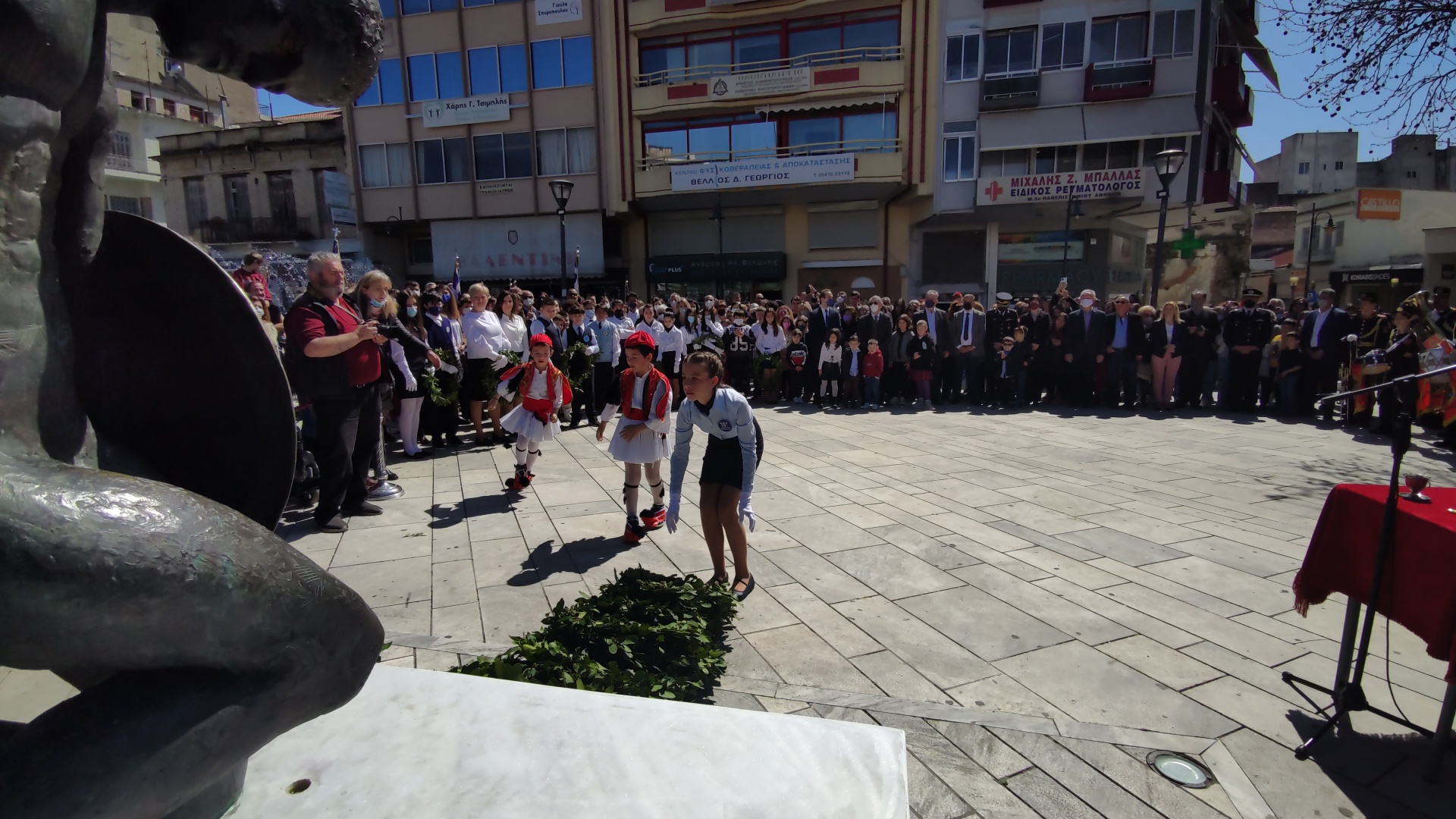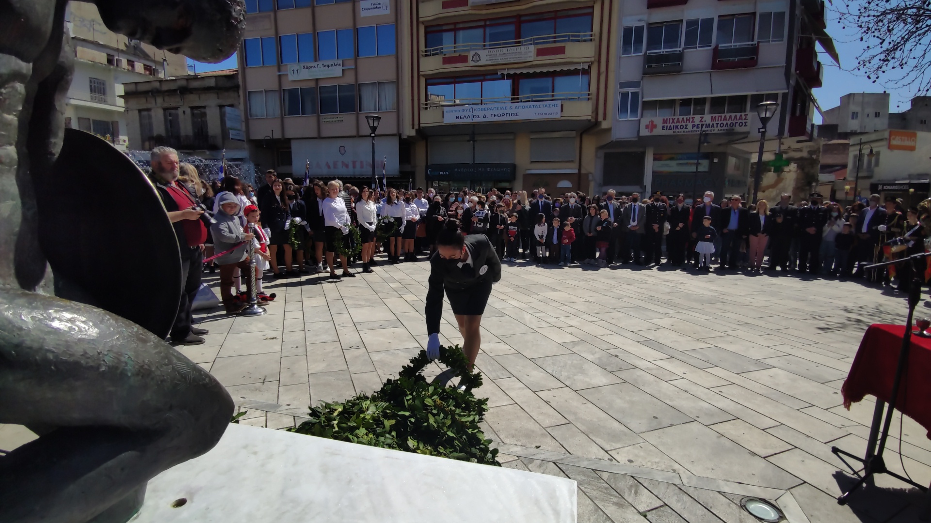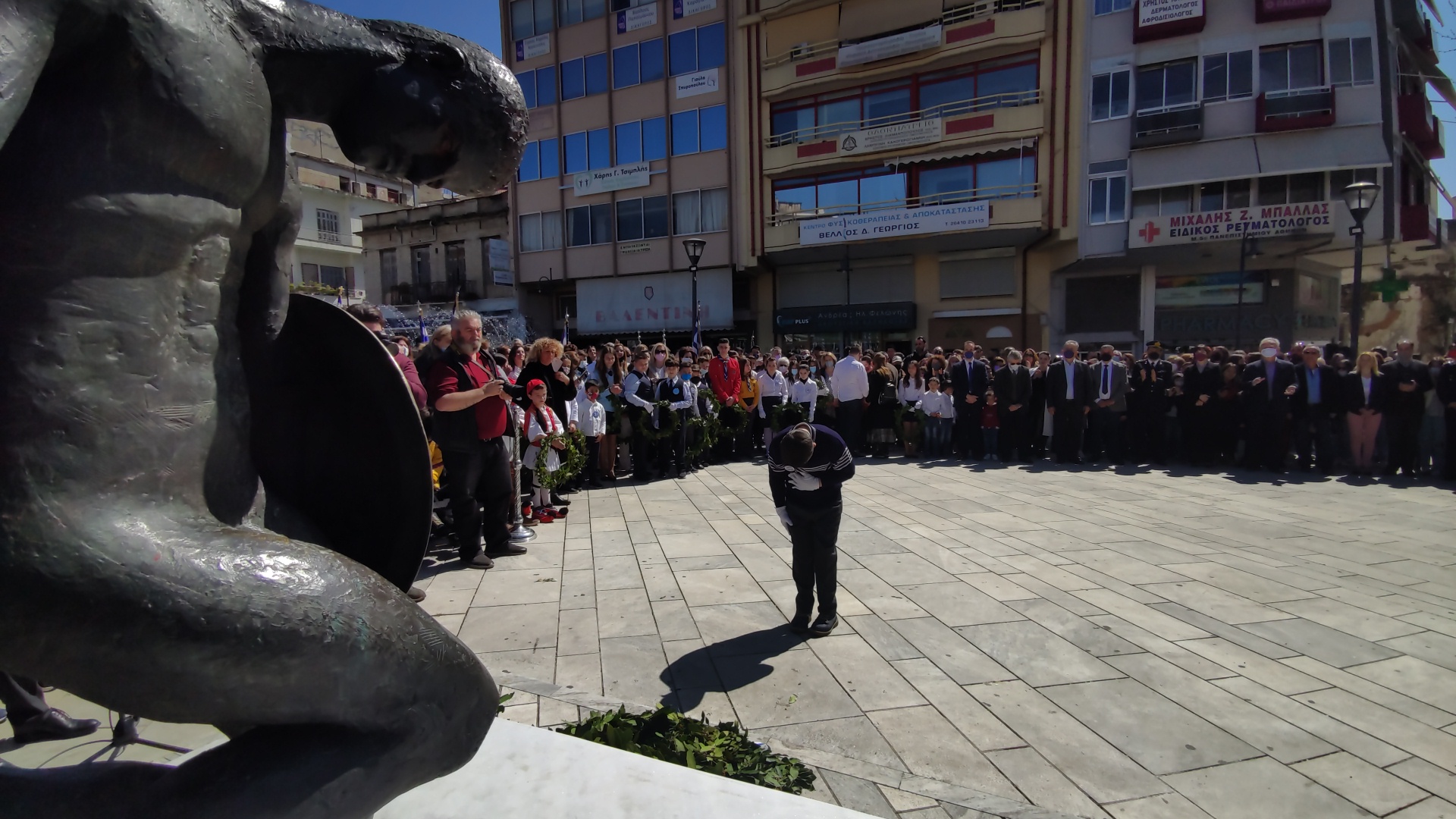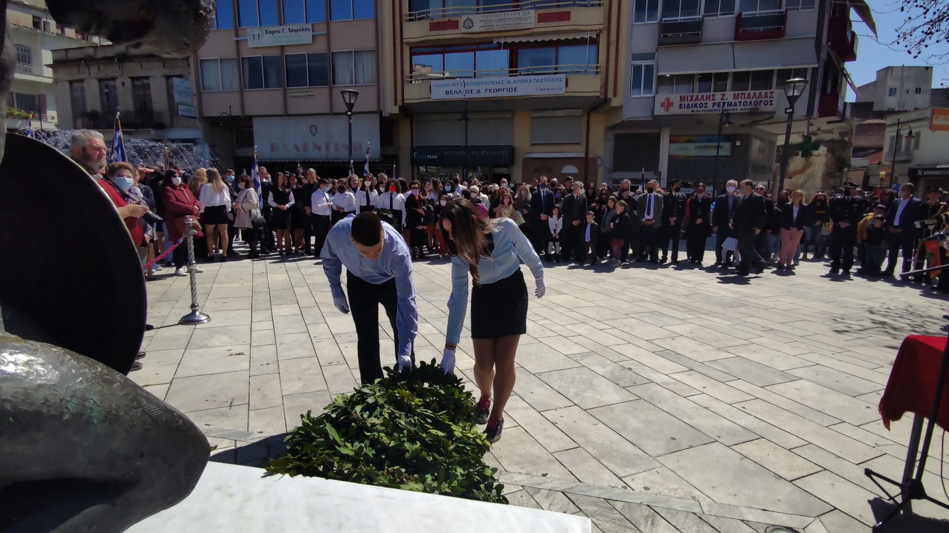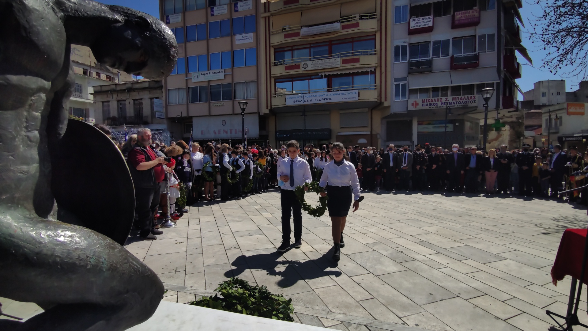 Στην πλατεία Δημάδη τελέστηκε η Επιμνημόσυνη δέηση και πραγματοποιήθηκε η κατάθεση στεφάνων από μαθητές σχολείων του Αγρινίου, Ειδικών Σχολείων, εκπροσώπων της μαθητικής κοινότητας και φορέων παρουσία στελεχών της Δημοτικής Αρχής και σωμάτων ασφαλείας.