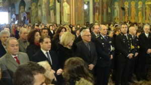 Το πρωί τελέστηκε Θεία Λειτουργία και Μέγας Αγιασμός στον Ιερό Ναό Αγίου Χριστοφόρου παρουσία της Αντ .Δ .Ε. Χριστίνας Σταρακά, του προέδρου του Δημοτικού Συμβουλίου Β. Φωτάκη, των Αντιδημάρχων Μ. Παπαγεωργίου, Ιωάννη Φαρμάκη, του Αντιπροέδρου της ΔΕΥΑΑ Μ. Σκορδόπουλου, Δημοτικών συμβούλων, του Αστυνομικού Διευθυντή Π.Πετσίνη, του Διοικητή της Π.Υ Χριστόφορου Μπόκα, εκπροσώπων φορέων , συλλόγων και πιστών.