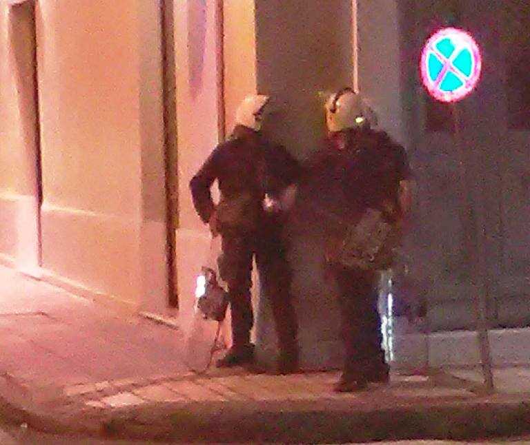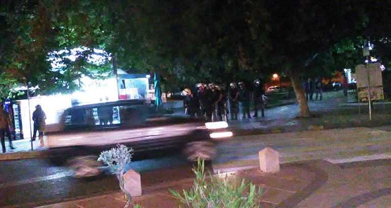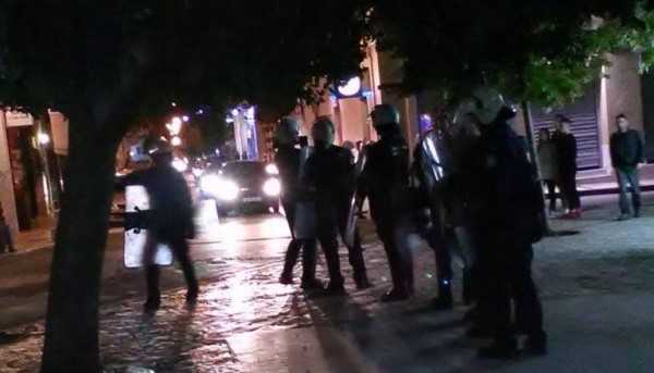 Μεγάλη η αστυνομική δύναμη σήμερα στην πόλη με διμοιρίες των ΜΑΤ – Μικροεπεισόδια σημειώθηκαν λίγο μετά τι 10:00 το βράδυ.