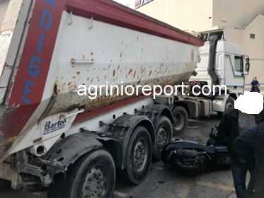 Τροχαίο ατύχημα σημειώθηκε σήμερα το πρωί λίγο πριν τις 09:00 στη συμβολή των οδών Τερτσέτη και Παπαφλέσσα, στο ύψος του Ι.Ν. Αγίου Δημητρίου Αγρινίου, μετά από σύγκρουση δικύκλου με φορτηγό.