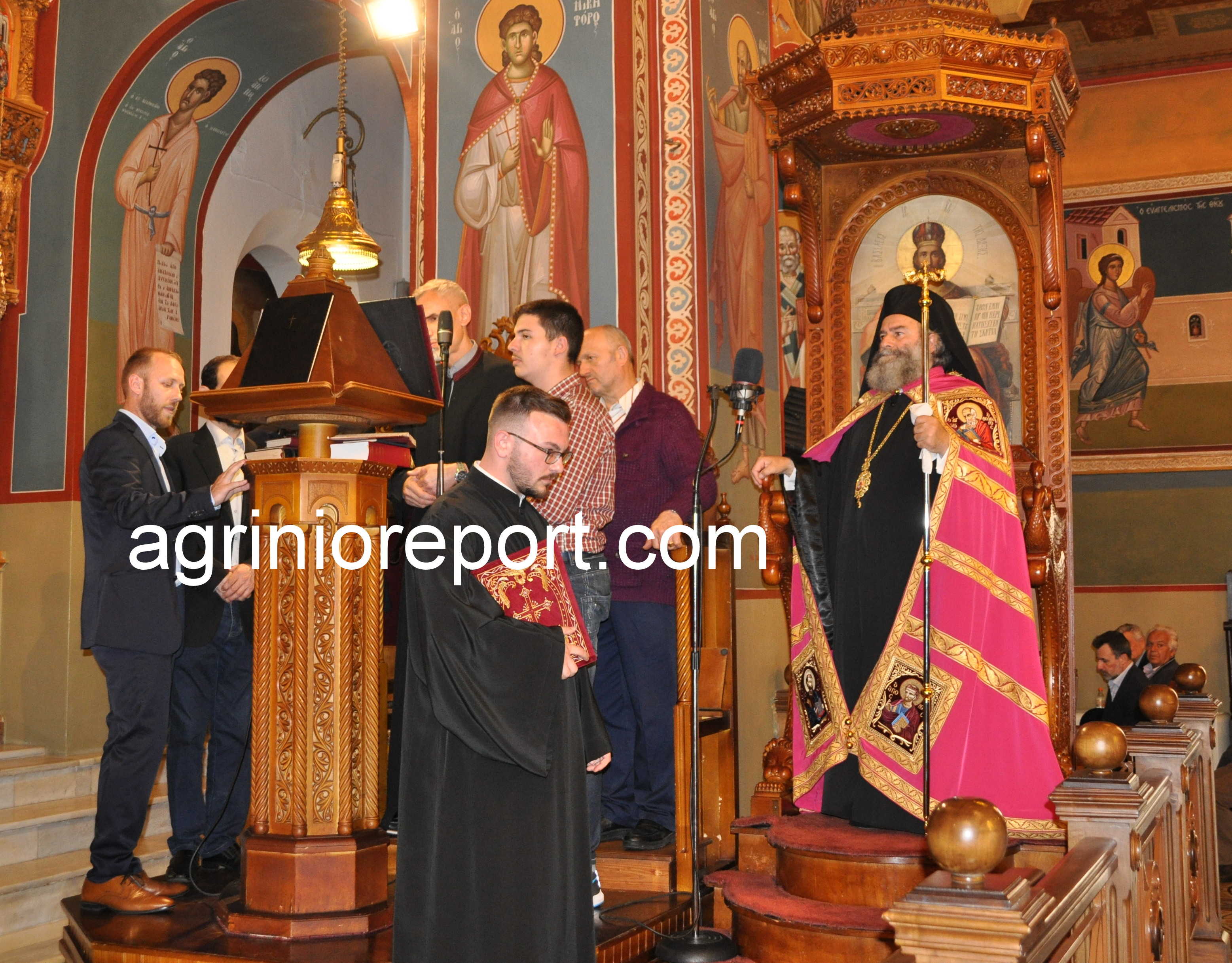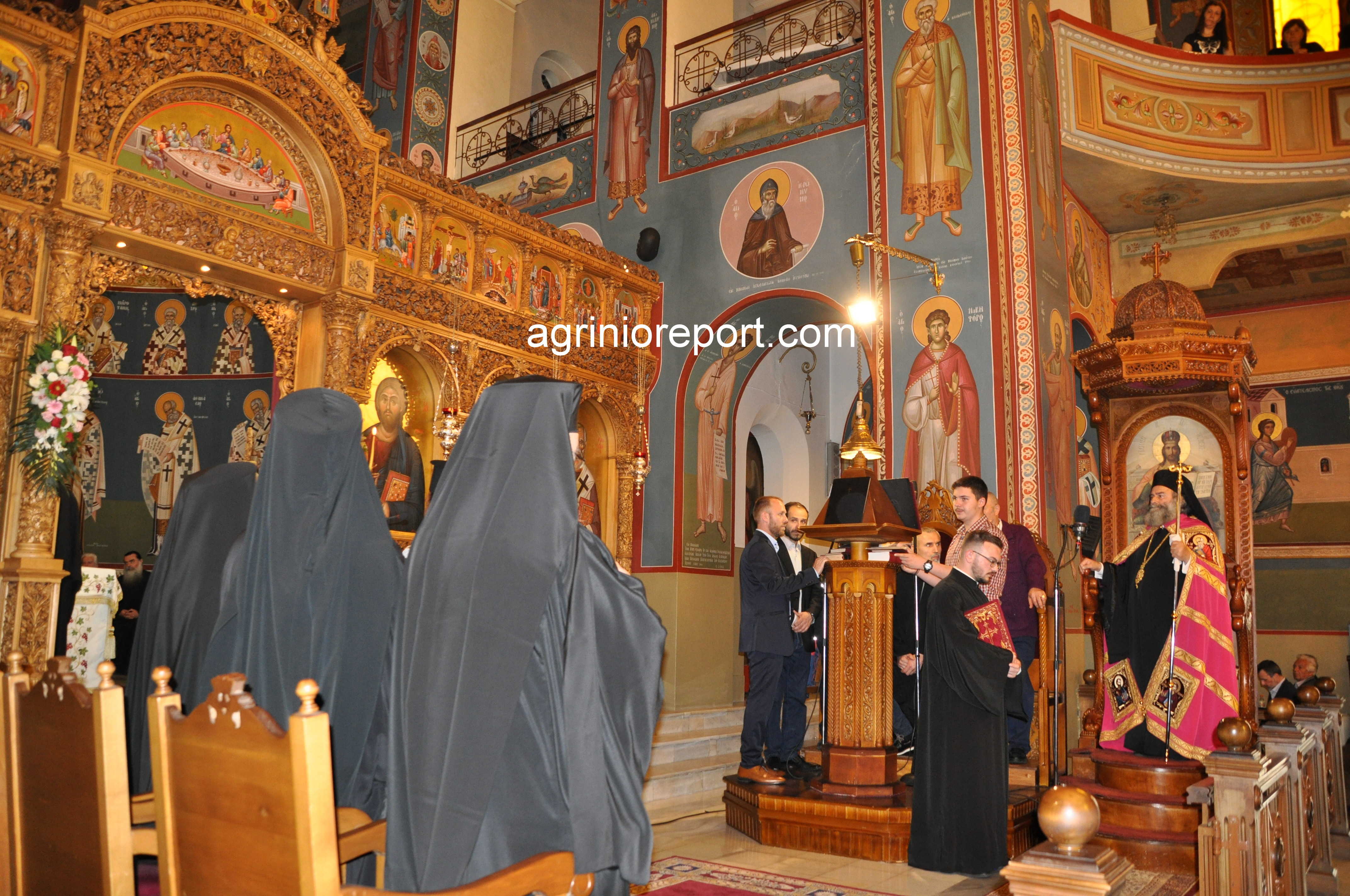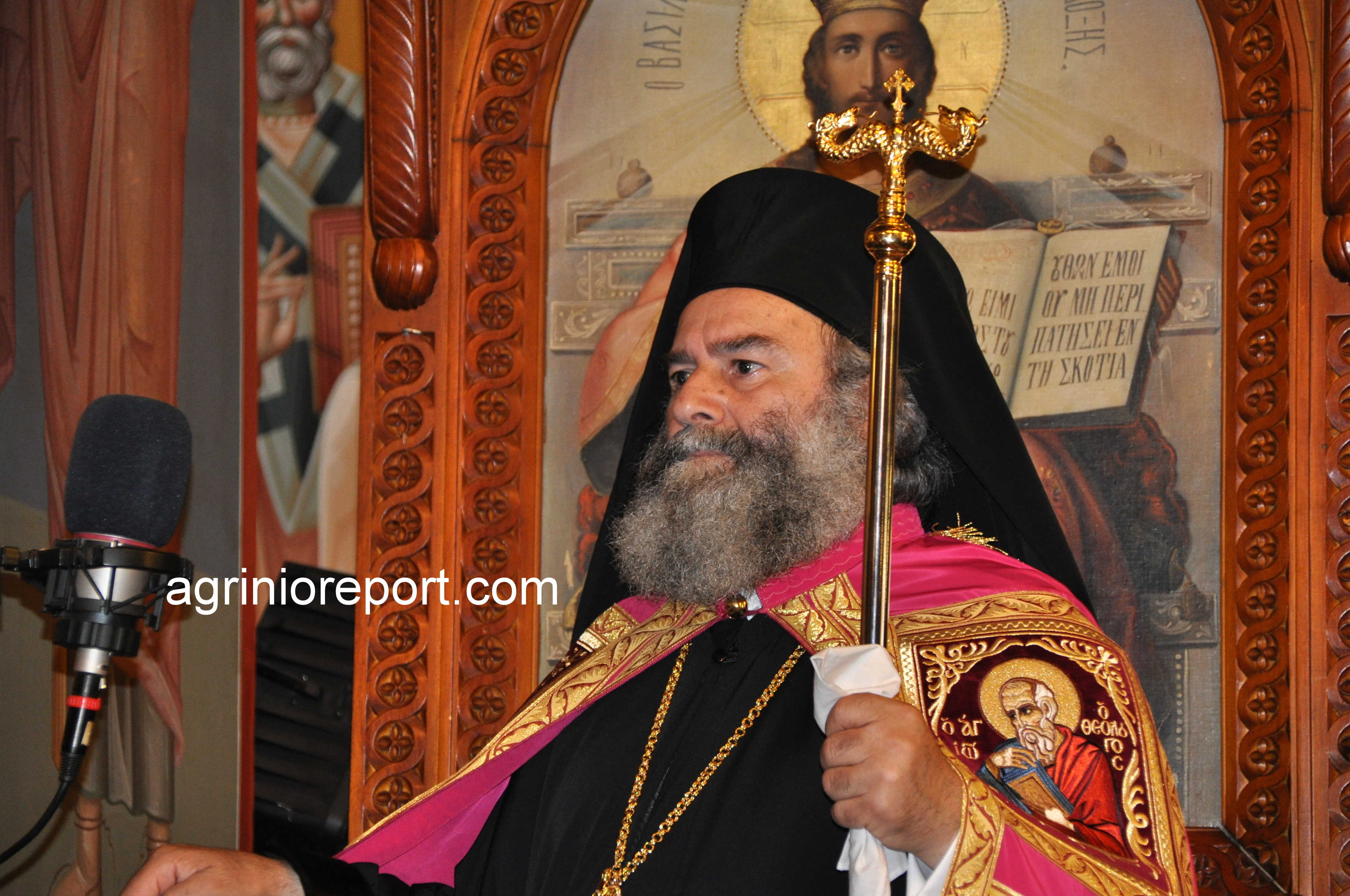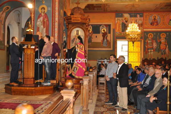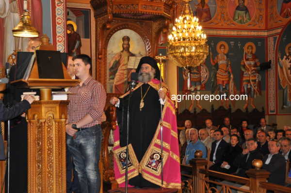 ” Ο Μητροπολίτης Αιτωλίας και Ακαρνανίας κ. Κοσμάς, καλοσωρίζοντας και παρουσιάζοντας στους πιστούς τους αγίους Αρχιερείς, εξέφρασε τη χαρά του και τις ευχαριστίες του για την παρουσία τους στην εορτή του Πολιούχου Αγρινίου.