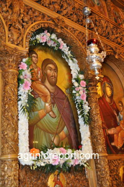Ο Σεβασμιώτατος κ. Κοσμάς, τόνισε πως «ο Άγιος Χριστοφόρος αγαπά και προστατεύει τους κατοίκους του Αγρινίου, αλλά και οι Αγρινιώτες ευλαβούνται, σέβονται και τιμούν τον πολιούχο τους Άγιο Χριστοφόρο, προς τιμήν του οποίου έχουν ανεγείρει δύο Ναούς. Τον παλαιό και ιστορικό Ναό που βρίσκεται στο δασύλλιο της πόλεως και τον μεγαλοπρεπή νέο Ναό, το οποίο ανήγειρε η ανύστακτη φροντίδα του αειμνήστου αγιασμένου Γέροντος αρχιμανδρίτου Απόστολου Φαφούτη».