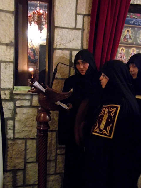 Στην Αγρυπνία χοροστάτησε ο Ιερομόναχος της Ι.Μ. Κουτλουμουσίου Αγίου Όρους π.Φιλόθεος, ενώ η Ηγουμένη της Ιεράς Μονής Ευαγγελισμού της Θεοτόκου Παρασκευή και η συνοδεία της γλύκαναν τις καρδιές των πιστών με την υπέροχη ψαλμωδία τους αλλά και την εν γένει φιλοξενία τους.