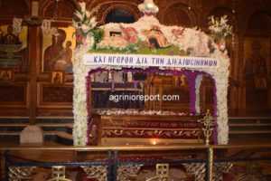 Μπορεί ο βροχερός καιρός να προκάλεσε μια αναστάτωση αρχικά και να μην έγινε η καθιερωμένη συνάντηση των Επιταφίων στην κεντρική πλατεία της πόλης του Αγρινίου, όμως αυτό δεν εμπόδισε την κατανυκτική συμμετοχή όλων των πιστών ζώντας ψυχικά το Θείο δράμα σε κάθε Ι.Ναό της πόλης.