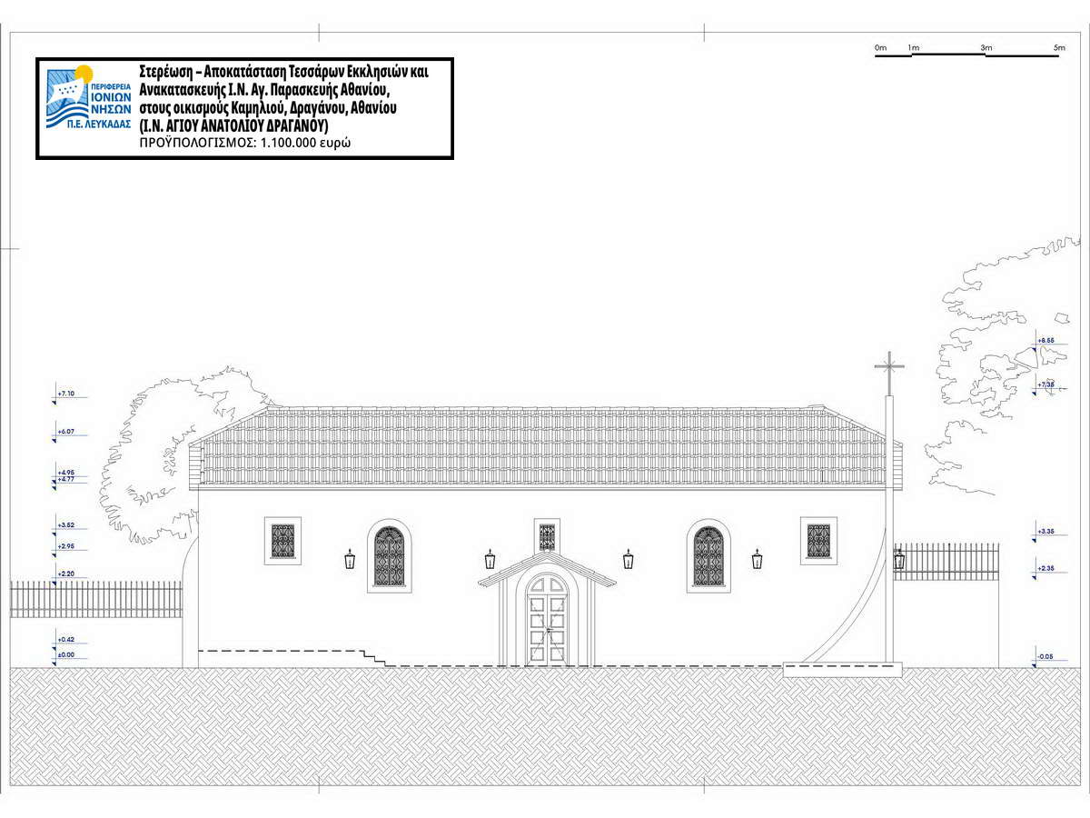 Το δρόμο της αποκατάστασης παίρνουν ο Ι.Ν. Υπαπαντής του Κυρίου και ο Ι.Ν. Αγίου Ανατολίου στο Δράγανο, μαζί με αυτές του Αθανίου και του Κομηλιού. Ολοκληρώθηκαν οι σχετικές μελέτες από τον Ανάδοχο της Περιφερειακής Ενότητας Λευκάδας και πλέον και οι 5 σεισμόπληκτες εκκλησίες της Νοτιοδυτικής Λευκάδας είναι πλήρως ώριμες για το επόμενο στάδιο της δημοπράτησης των κατασκευαστικών/επισκευαστικών εργασιών, για τις οποίες υπάρχει διασφαλισμένη χρηματοδότηση ύψους 1.100.000 ευρώ, μέσω του έργου «Στερέωση – Αποκατάσταση Τεσσάρων Εκκλησιών και Ανακατασκευής Ι.Ν. Αγ. Παρασκευής Αθανίου, στους οικισμούς Καμηλιού, Δραγάνου, Αθανίου».
