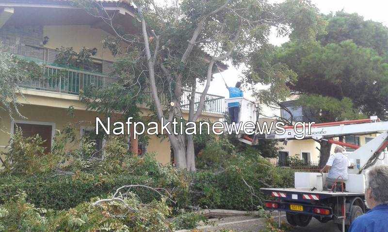 Ξεριζώθηκε δέντρο και έπεσε πάνω σε μπαλκόνι κανείς σύμφωνα με πληροφορίες δεν έχει τραυματιστεί. Συνεργεία του Δήμου Ναυπακτίας προσπαθούν να απομακρύνουν το δέντρο από το μπαλκόνι του σπιτιού.
