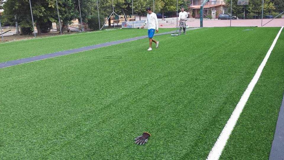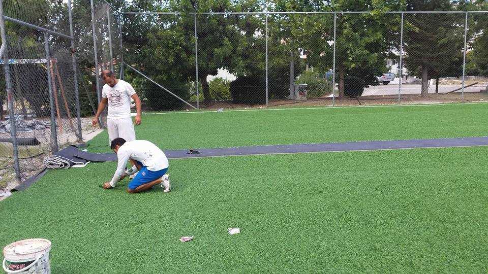 Ολοκληρώθηκαν χθες το πρωί οι εργασίες αντικατάστασης πλαστικού χλοοτάπητα στο γήπεδο 5Χ5 που βρίσκεται στην οδό Εργάνης στον Άγιο Κωνσταντίνο.