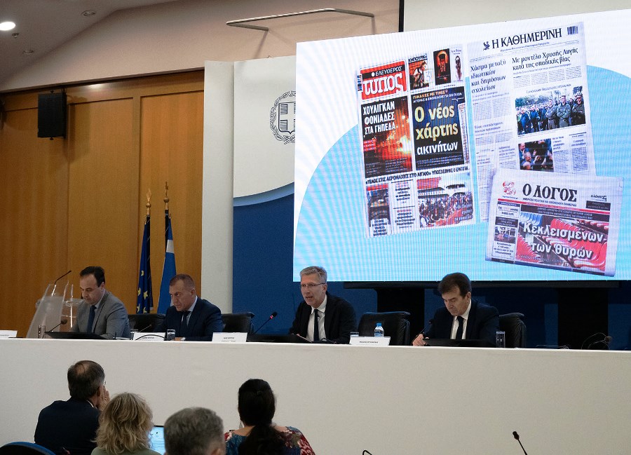 Διυπουργική Συνέντευξη Τύπου με τον απολογισμό των μέτρων για την πρόληψη και αντιμετώπιση της οπαδικής βίας τους τελευταίους 16 μήνες, με τη συμμετοχή των Υπουργών Προστασίας του Πολίτη Μιχάλη Χρυσοχοΐδη, Ψηφιακής Διακυβέρνησης Δημήτρη Παπαστεργίου και του αναπληρωτή Υπουργού Αθλητισμού Γιάννη Βρούτση, πραγματοποιήθηκε σήμερα, Τετάρτη 2 Ιουλίου 2025, στο Υπουργείο Ψηφιακής Διακυβέρνησης.