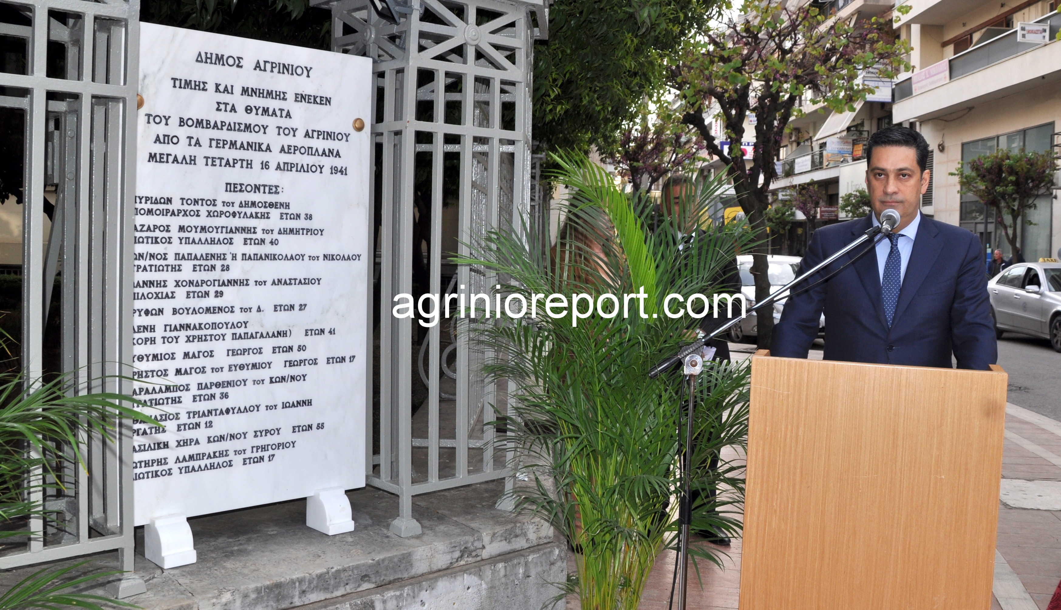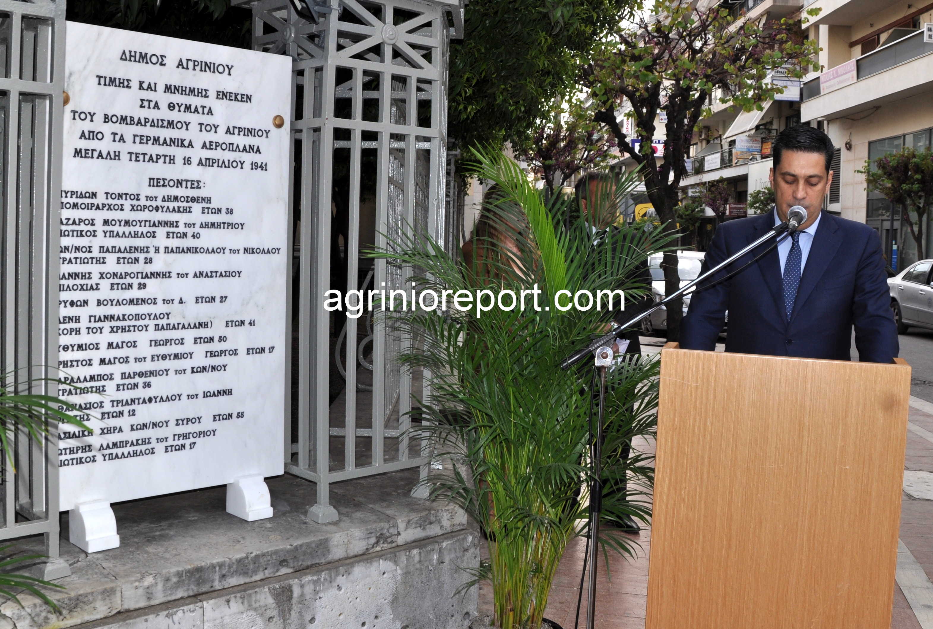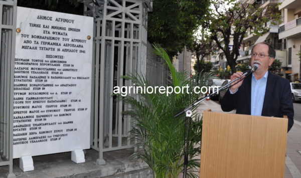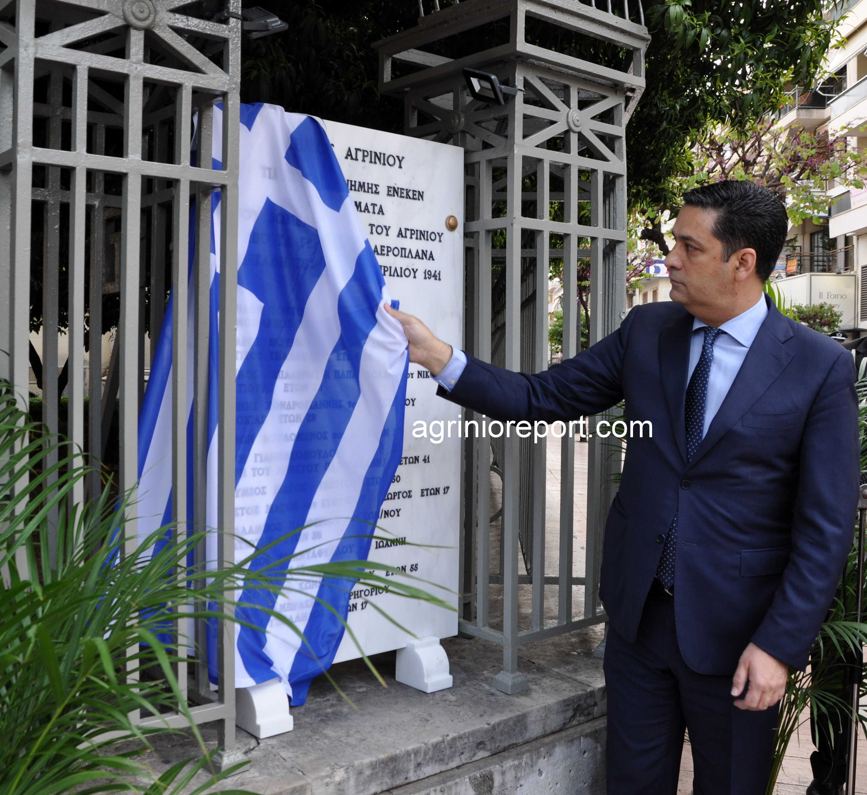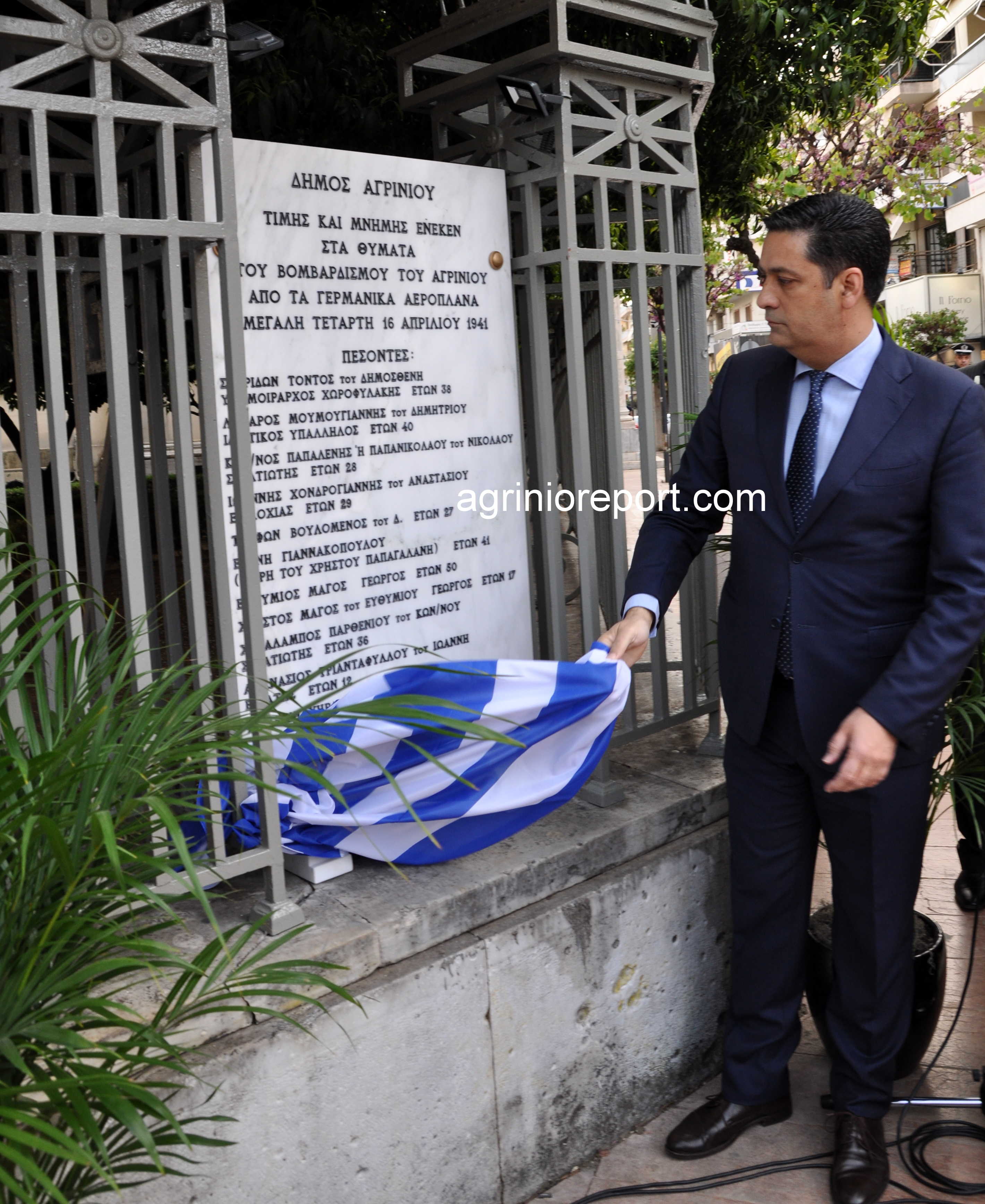 Σε κλίμα συγκίνησης έγιναν από τον Δήμαρχο Αγρινίου τα αποκαλυπτήρια της τιμητικής επιγραφής για τα θύματα του βομβαρδισμού του Αγρινίου τη Μεγάλη Τετάρτη, 16 Απριλίου 1941.