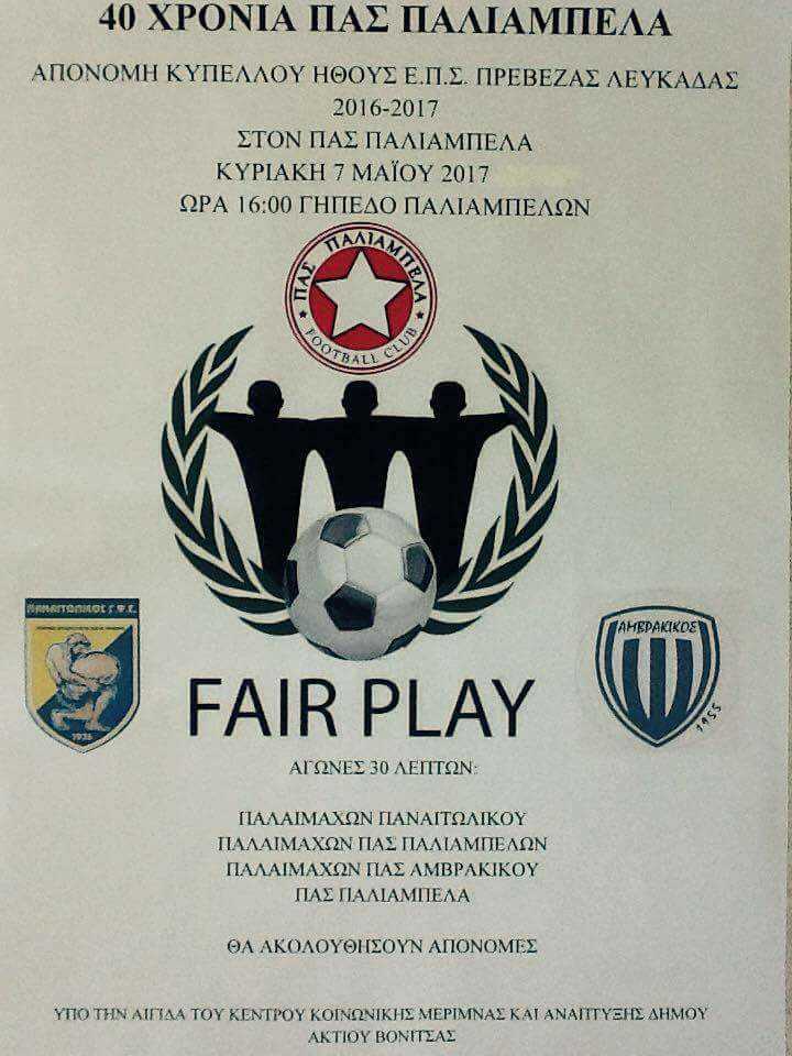 . . . θα γίνει από την ΕΠΣ Πρέβεζας – Λευκάδας την Κυριακή 7 Μαΐου στις 16.00 μμ στο Δημοτικό Γήπεδο τον Παλιαμπέλων.