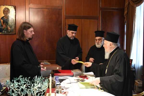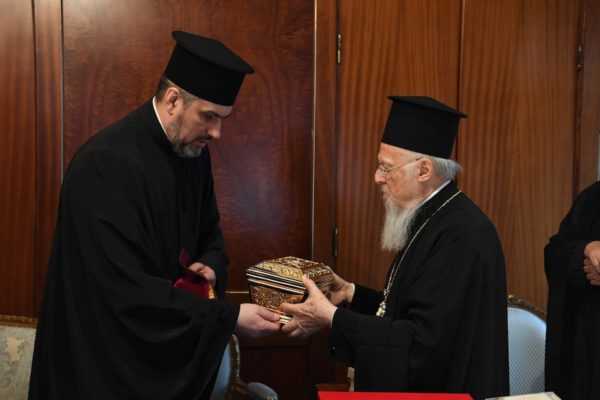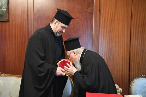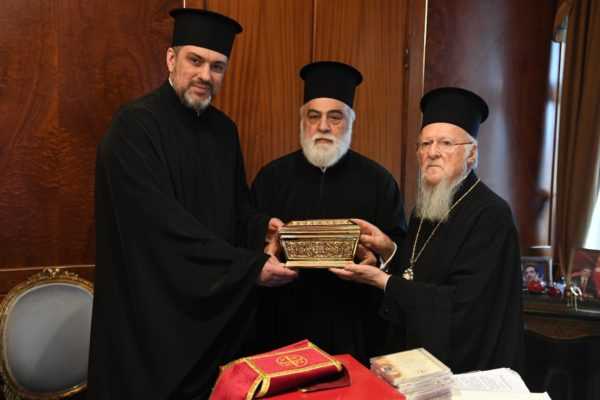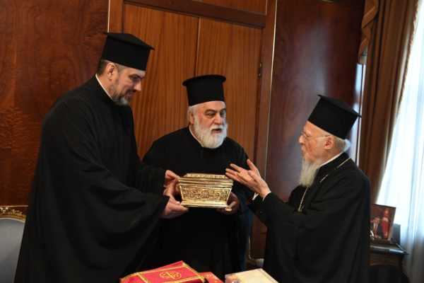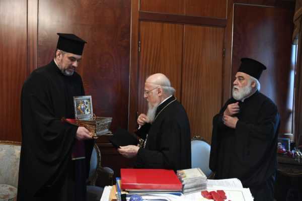 Ένα ικανό απότμημα του Ιερού Λειψάνου της Αγίας Αναστασίας της Φαρμακολυτρίας προσέφεραν στον Οικουμενικό Πατριάρχη Βαρθολομαίο οι κληρικοί π.Μπογκτάν Γουλιάμωφ και π.Πέτρος Ζούγιεφ, της Αυτοκεφάλου Εκκλησίας της Ουκρανίας, κατά την συνάντησή που είχαν σήμερα, Τετάρτη, 10 Απριλίου, στο Φανάρι.