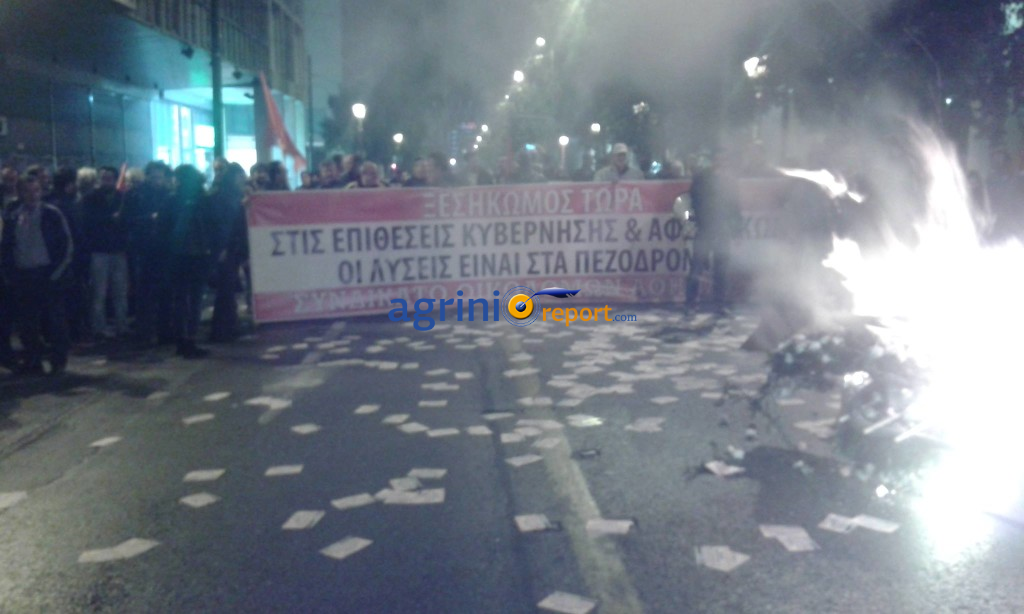 Μια μεγάλη διαδήλωση κατά του ασφαλιστικού από οικοδόμους έγινε χθες το βράδυ στην πλατεία Κάνιγγος.