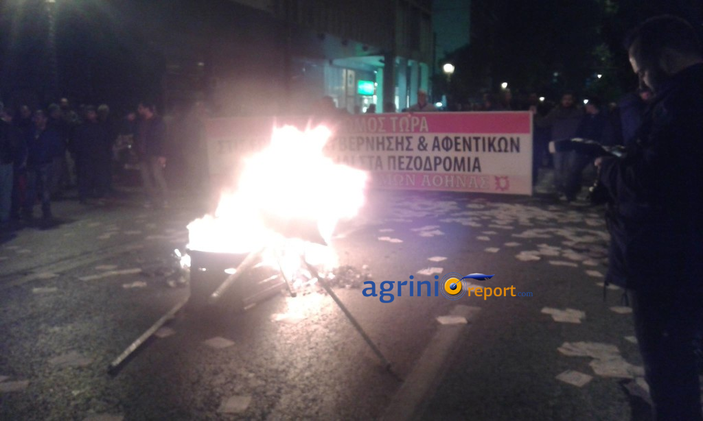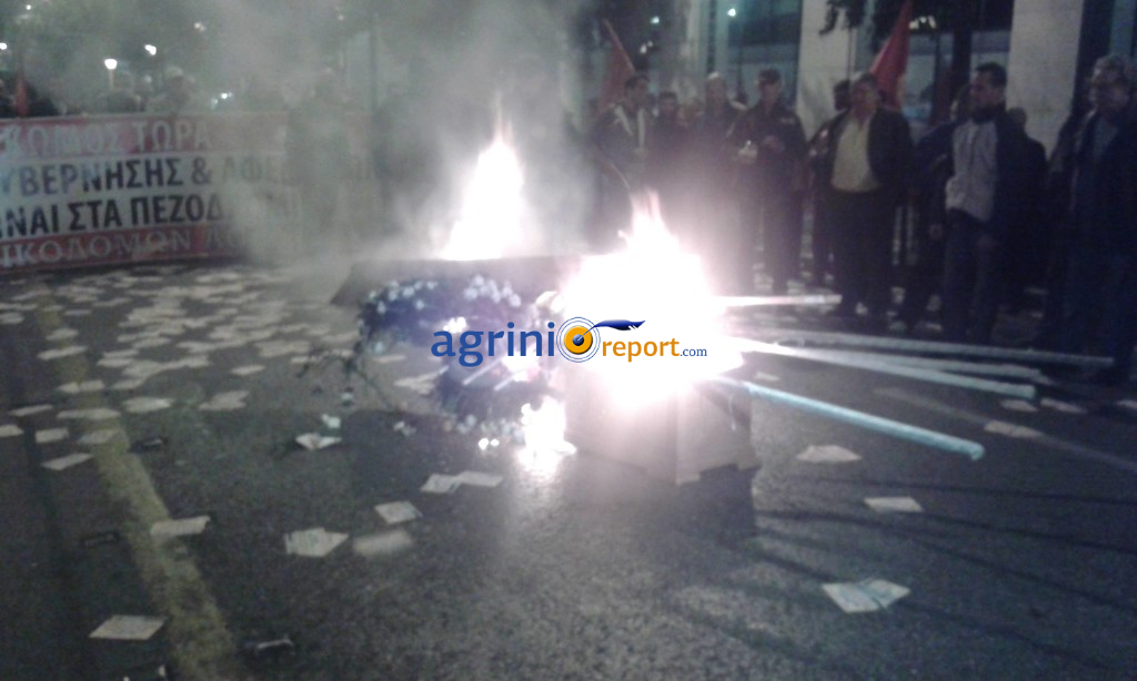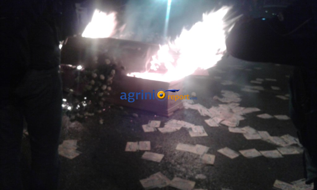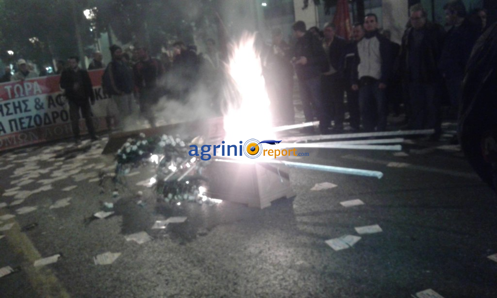 5Στη συνέχεια, έβαλαν φωτιά στο φέρετρο ενώ τα συνθήματα που κυριαρχούσαν ήταν: «διαλύουν την ασφάλιση και βγαίνουμε στο δρόμο, πάρτε πίσω τον νόμο – λαιμητόμο».