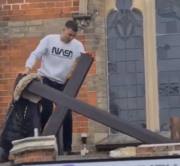 Σύμφωνα με το βίντεο που δημοσιεύτηκε στα κοινωνικά δίκτυα νεαρός άνδρας καταστρέφει τον Σταυρό που βρισκόταν άνωθεν της εισόδου του Ιερού Ναού χωρίς να είναι γνωστοί τουλάχιστον εκείνη την στιγμή οι λόγοι για αυτή την πράξη.