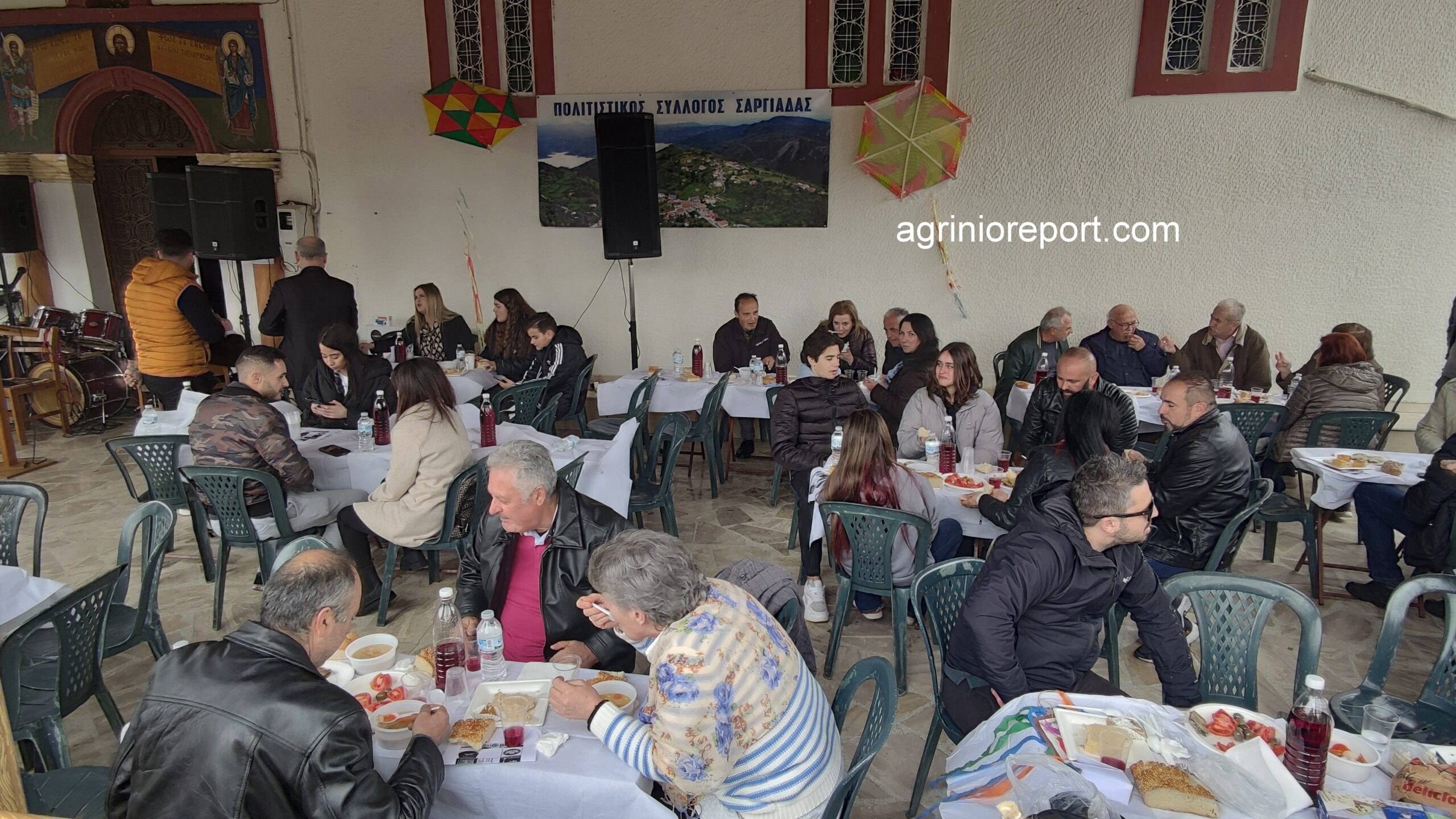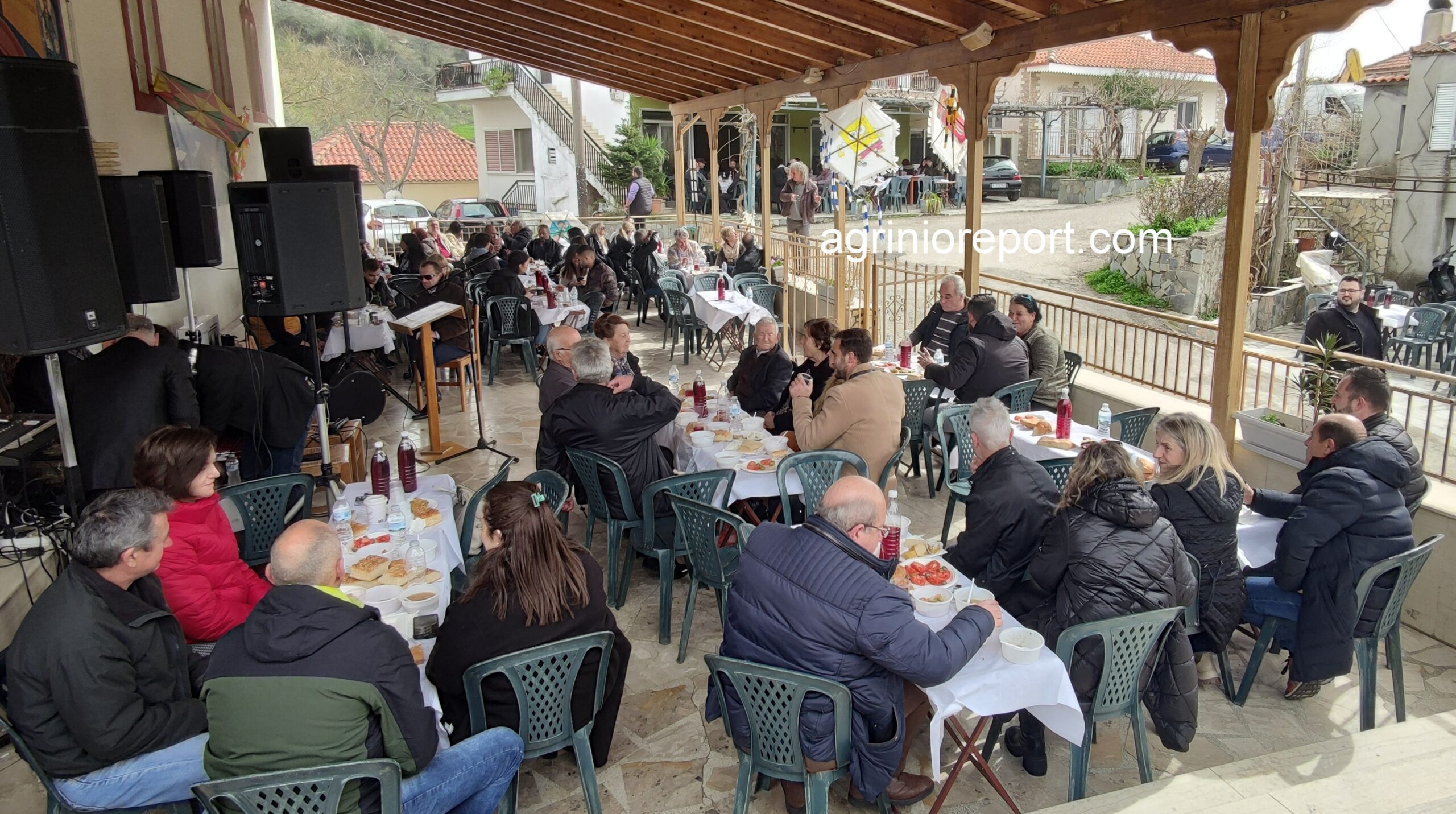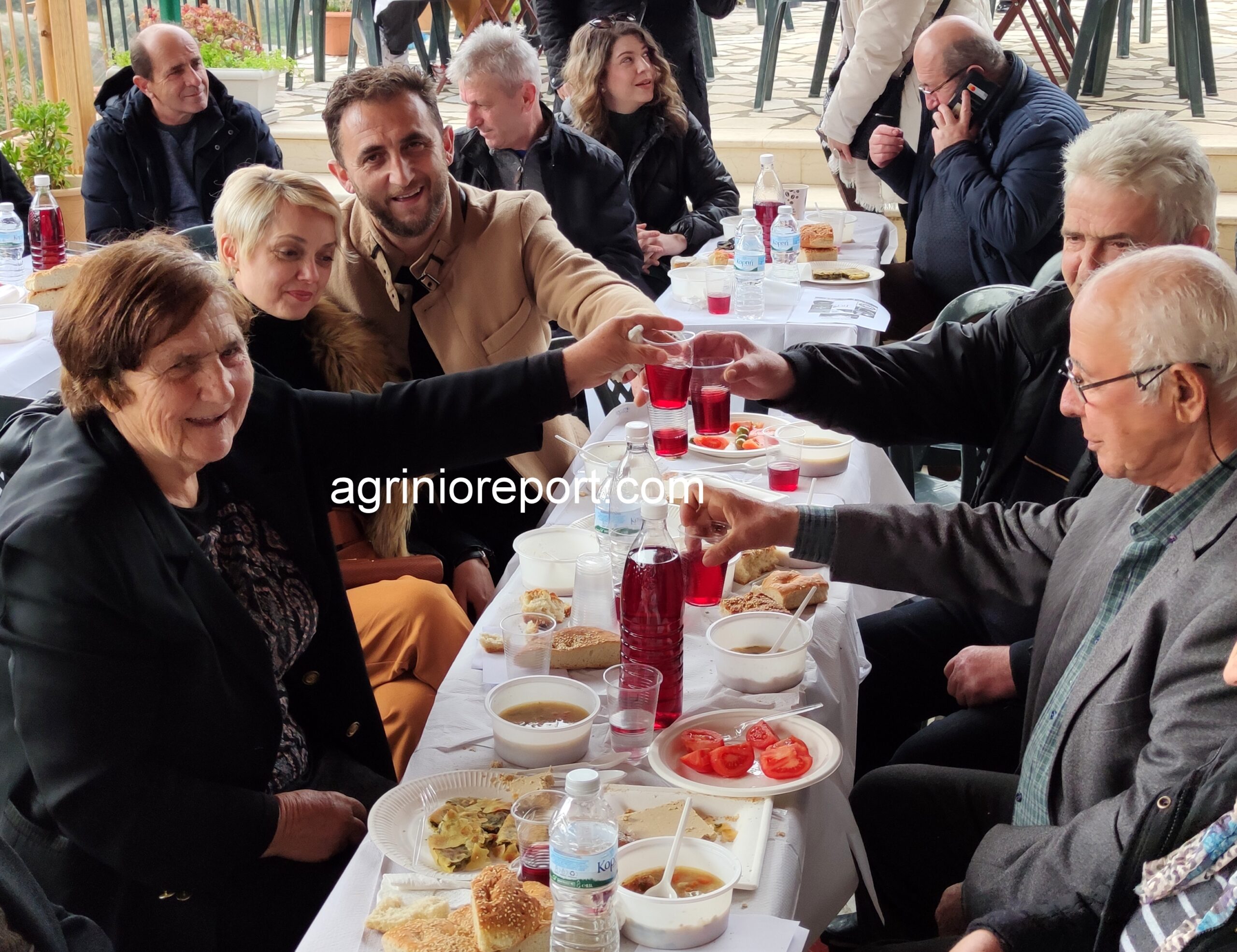 Οι κατσαρόλες με την φασολάδα έβραζαν από το πρωί, οι λαγάνες έτοιμες και ζεστές, τουρσιά, ελιές, ντομάτες, χαλβάδες και πίτες νηστίσιμες φτιαγμένες από τις γυναίκες του συλλόγου. Τα τραπέζια έτοιμα με το κρασί και δεν άργησαν οι καρέκλες να γεμίσουν.