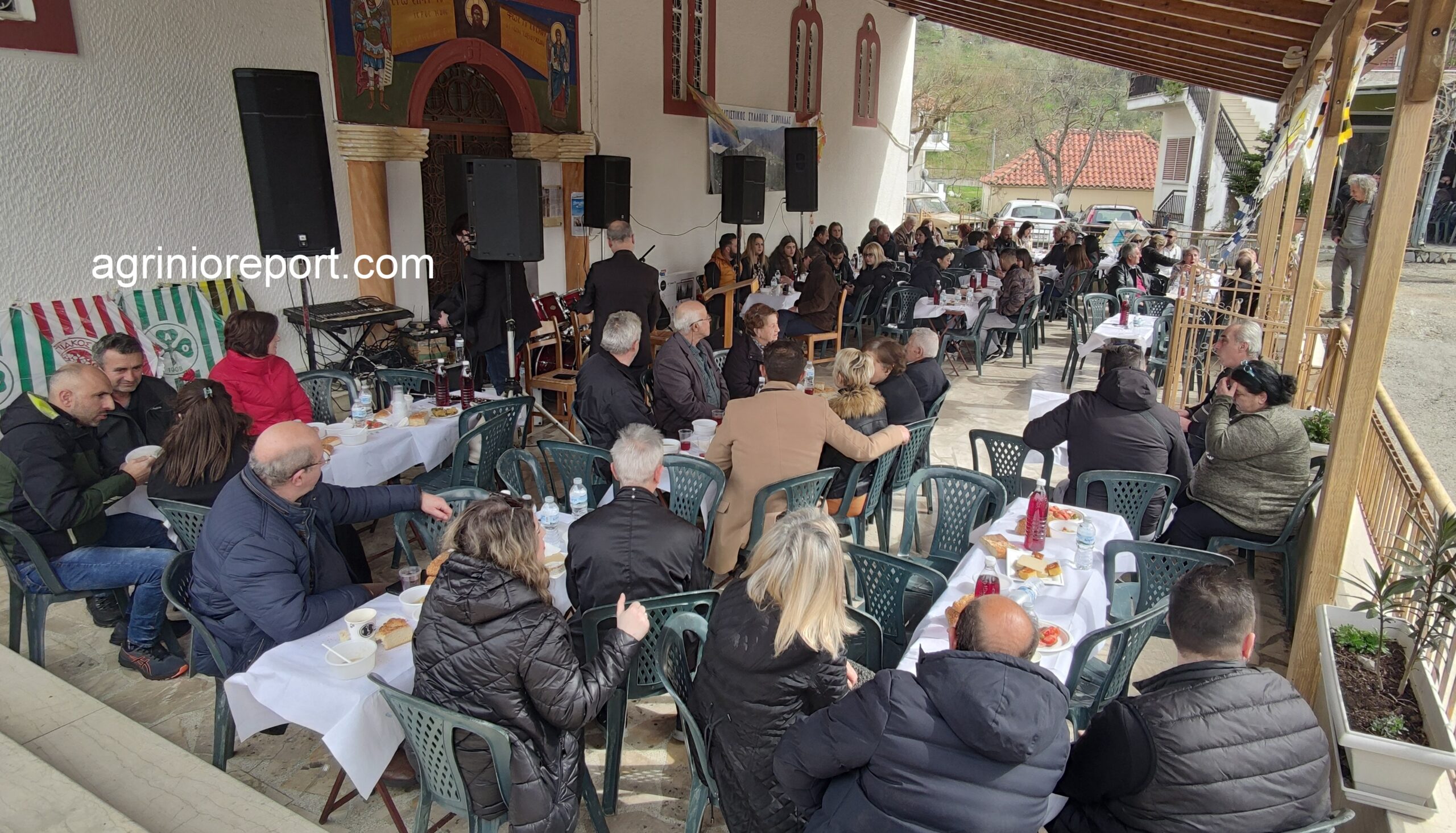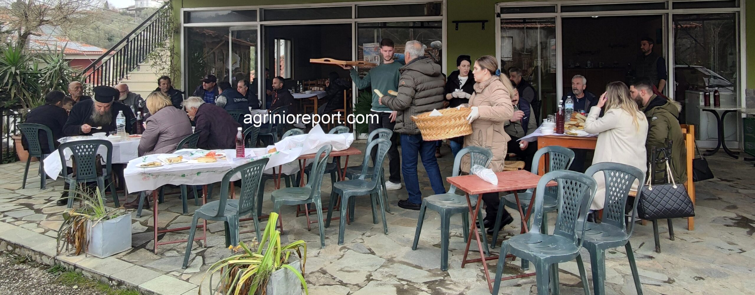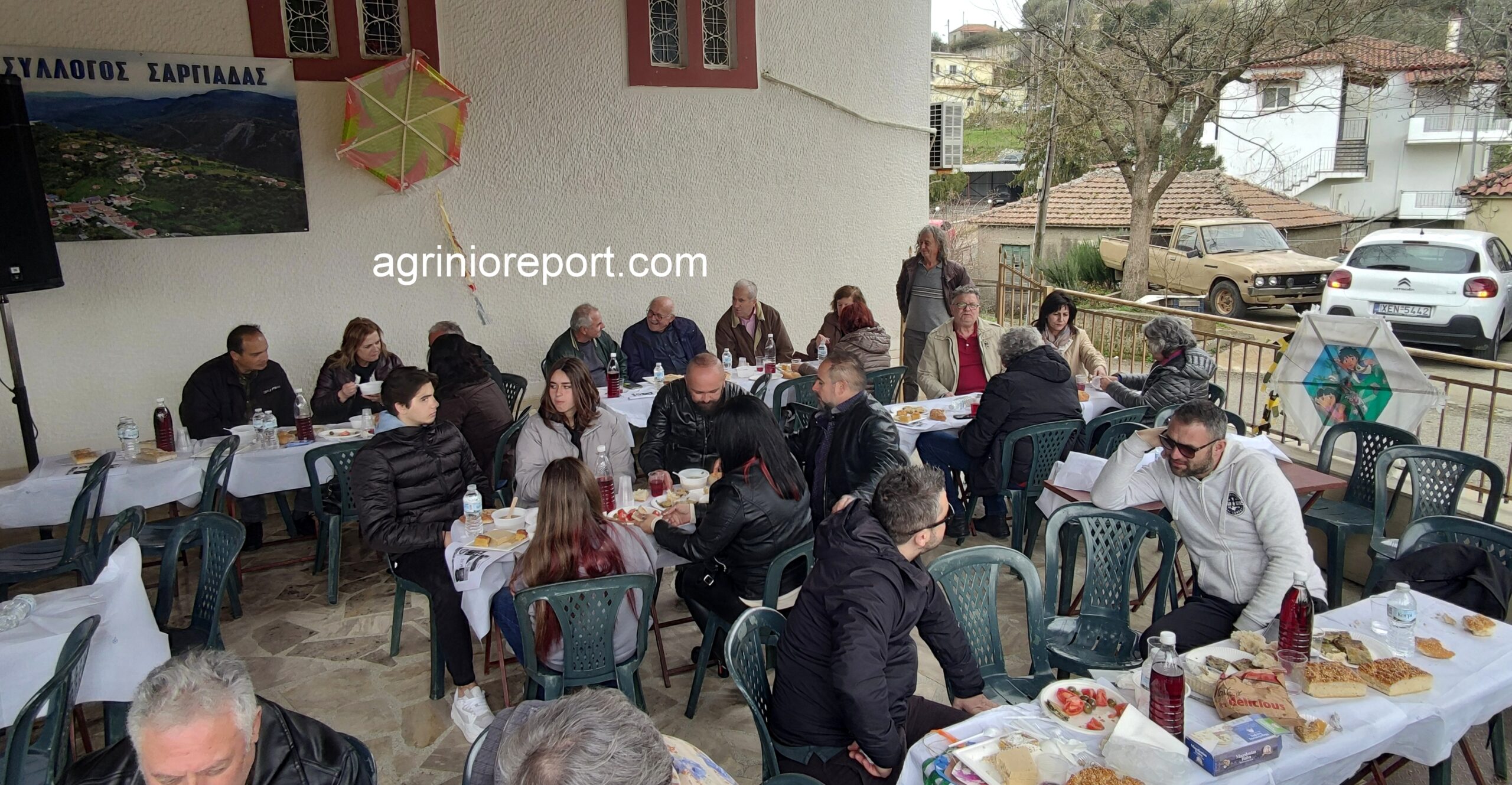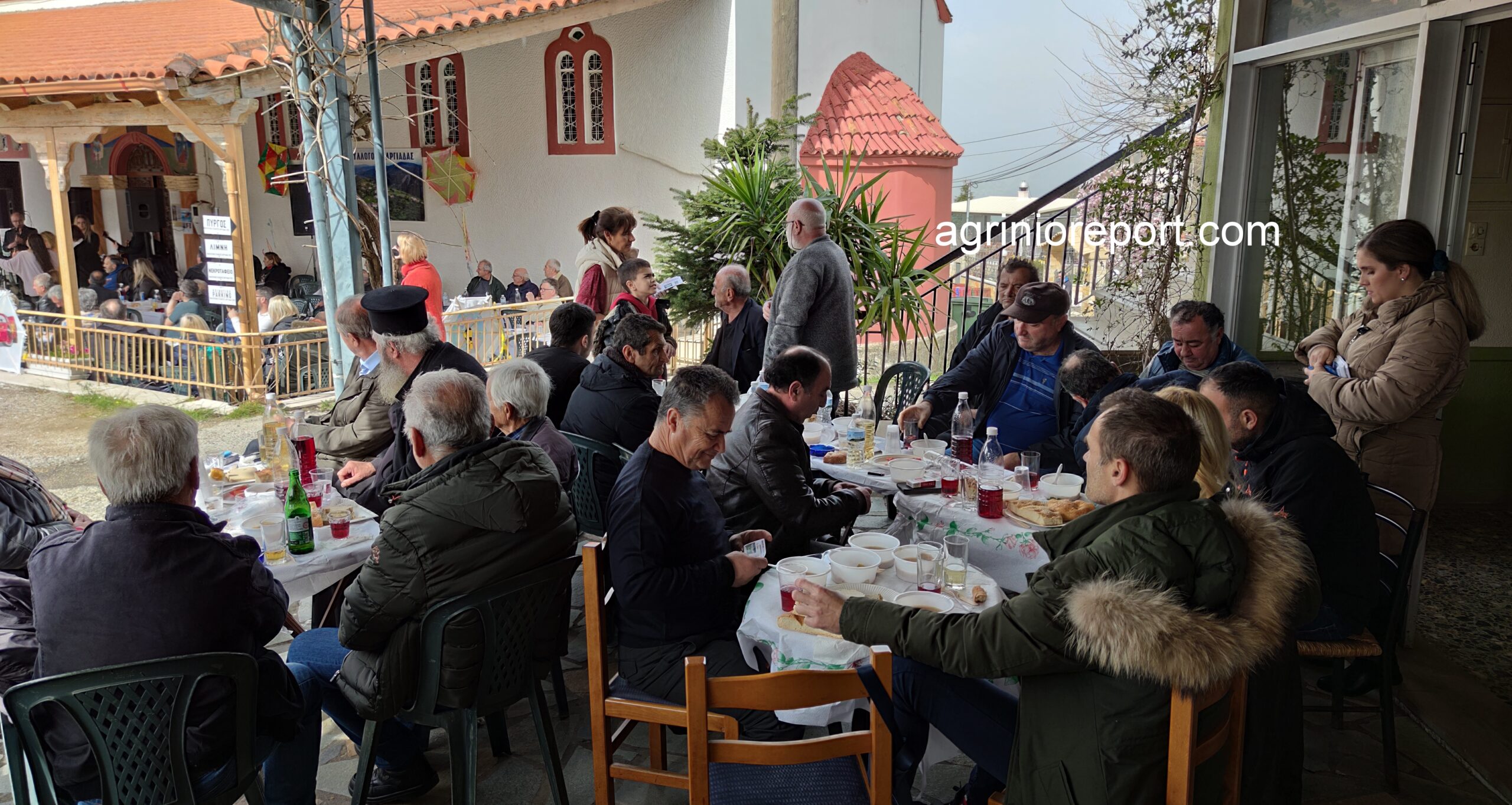 Οι κατσαρόλες με την φασολάδα έβραζαν από το πρωί, οι λαγάνες έτοιμες και ζεστές, τουρσιά, ελιές, ντομάτες, χαλβάδες και πίτες νηστίσιμες φτιαγμένες από τις γυναίκες του συλλόγου. Τα τραπέζια έτοιμα με το κρασί και δεν άργησαν οι καρέκλες να γεμίσουν.