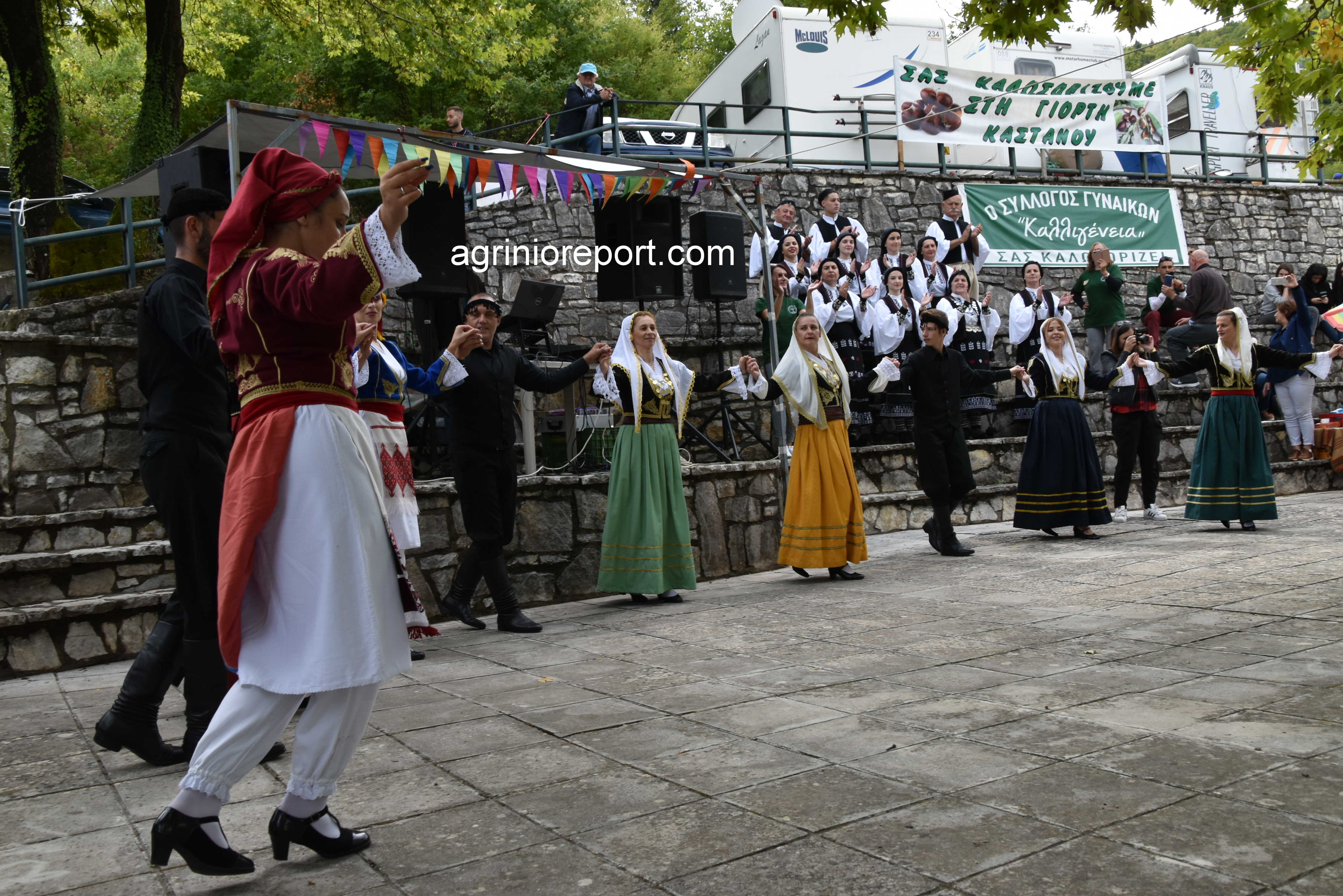 Σε ένα μοναδικό φυσικό τοπίο γεμάτο έλατα, καστανιές πλατάνια και τον ποταμό Εύηνο να απλώνεται μπροστά, πραγματοποιήθηκε για άλλη μια χρονιά στον Άγιο Δημήτριο Ναυπακτίας, η Γιορτή Κάστανου που ξεκίνησε από το 2009.