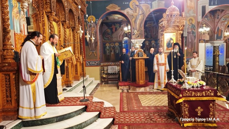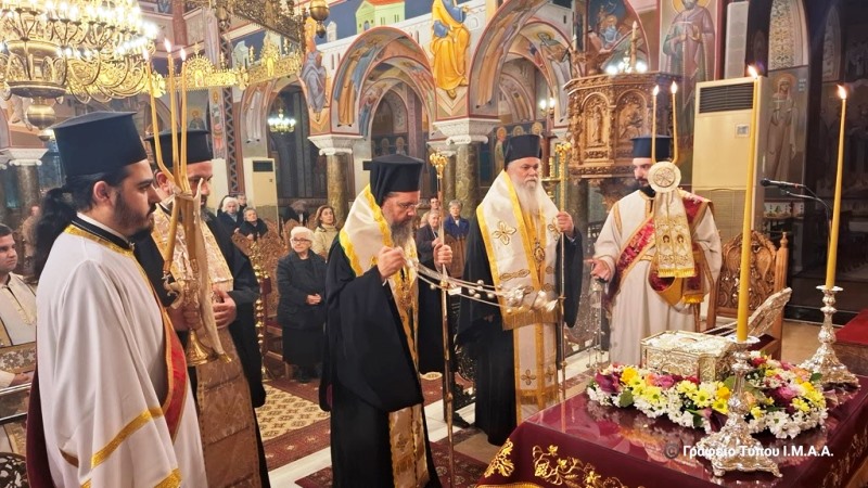 Ακολούθησε ο Παρακλητικός Κανόνας του Αγίου, χοροστατούντος του Μητροπολίτου Καλαβρύτων και συμπροσευχομένου του Σεβασμιωτάτου Ποιμενάρχου μας κ. Δαμασκηνού.