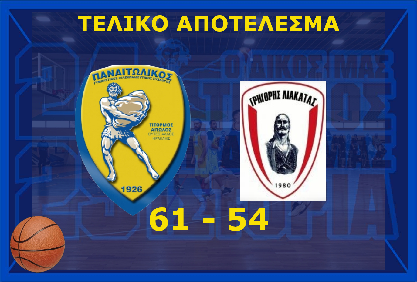 Η ομάδα του Αιτωλικού όμως κράτησε τη διαφορά της νίκης στον πρώτο αγώνα και υπερέχει σε περίπτωση τελικής ισοβαθμίας.Η ομάδα μας πήρε το προβάδισμα από νωρίς στο παιχνίδι και στη δεύτερη περίοδο ανέβασε στροφές φτάνοντας στο +13 στο ημίχρονο.