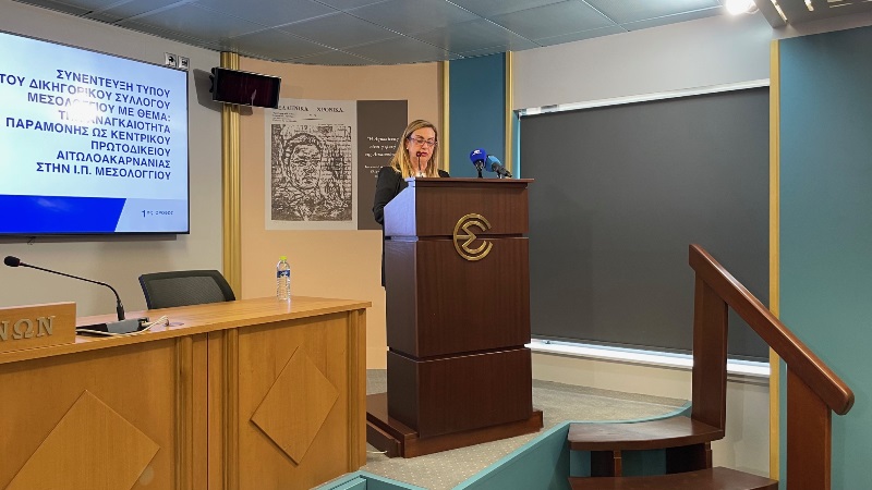 Η συνέντευξη προς τους εκπροσώπους του Τύπου πραγματοποιήθηκε σε συνεργασία με τον Πρόεδρο του Δικηγορικού Συλλόγου Μεσολογγίου κ. Χρήστο Σπ. Παΐσιο και την Πρόεδρο των Δικαστικών Υπαλλήλων Μεσολογγίου κα Ιωάννα Σταματοπούλου, με σκοπό την ενημέρωση όλων για την αναγκαιότητα να διατηρηθεί ως Κεντρικό το Ιστορικό Πρωτοδικείο Μεσολογγίου, όπως άλλωστε προβλέπεται από το νέο δικαστικό χάρτη για όλες τις Πρωτεύουσες Περιφερειακών Ενοτήτων στην Ελλάδα.