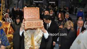 Με τις δέουσες τιμές αλλά και τον σεβασμό υποδέχθηκε σήμερα η πόλη του Αγρινίου στον Ιερό Ναό Αγίου Γεωργίου, το Ιερό Λείψανο του Αγίου ενδόξου Νεομάρτυρος Γεωργίου του εξ Ιωαννίνων.