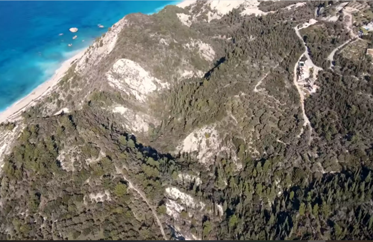 Χαρακτηριστικό των εντυπωσιακών εικόνων που κατέγραφε το drone είναι πως δεν θα ήταν υπερβολή να πούμε πως λόγω παλαιότερων σεισμών έχει «καταπιεί» ολόκληρα βουνά κόβοντας τα στη μέση. Το ρήγμα αυτό βρίσκεται σε απόσταση λίγων εκατοντάδων μέτρων από την δυτική ακτογραμμή και είναι ορατό από τον όρμο του Αγίου Νικήτα μέχρι και νότια από το χωριό Αθάνι, τέμνοντας τους ασβεστόλιθους και δολομίτες της περιοχής.