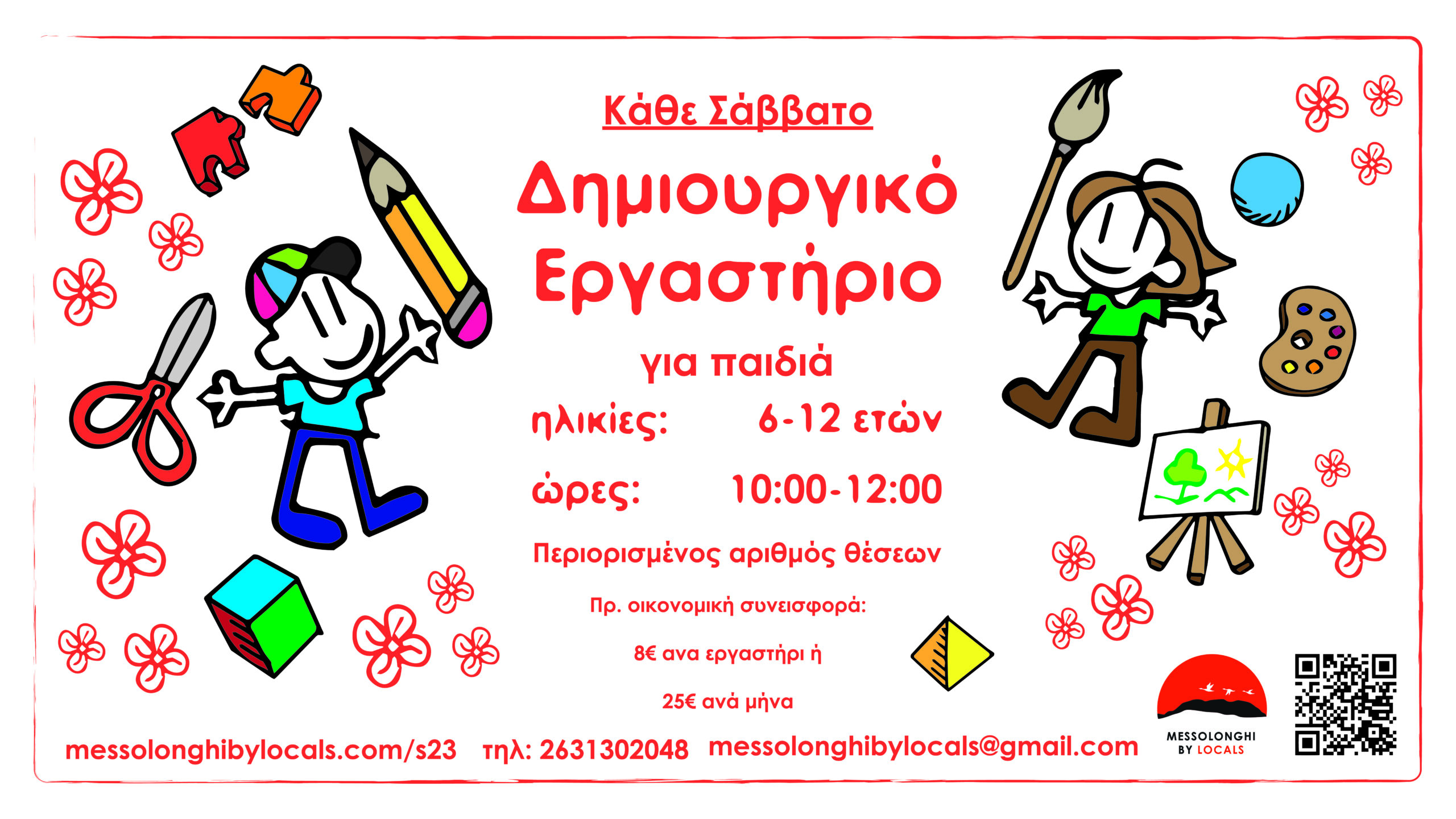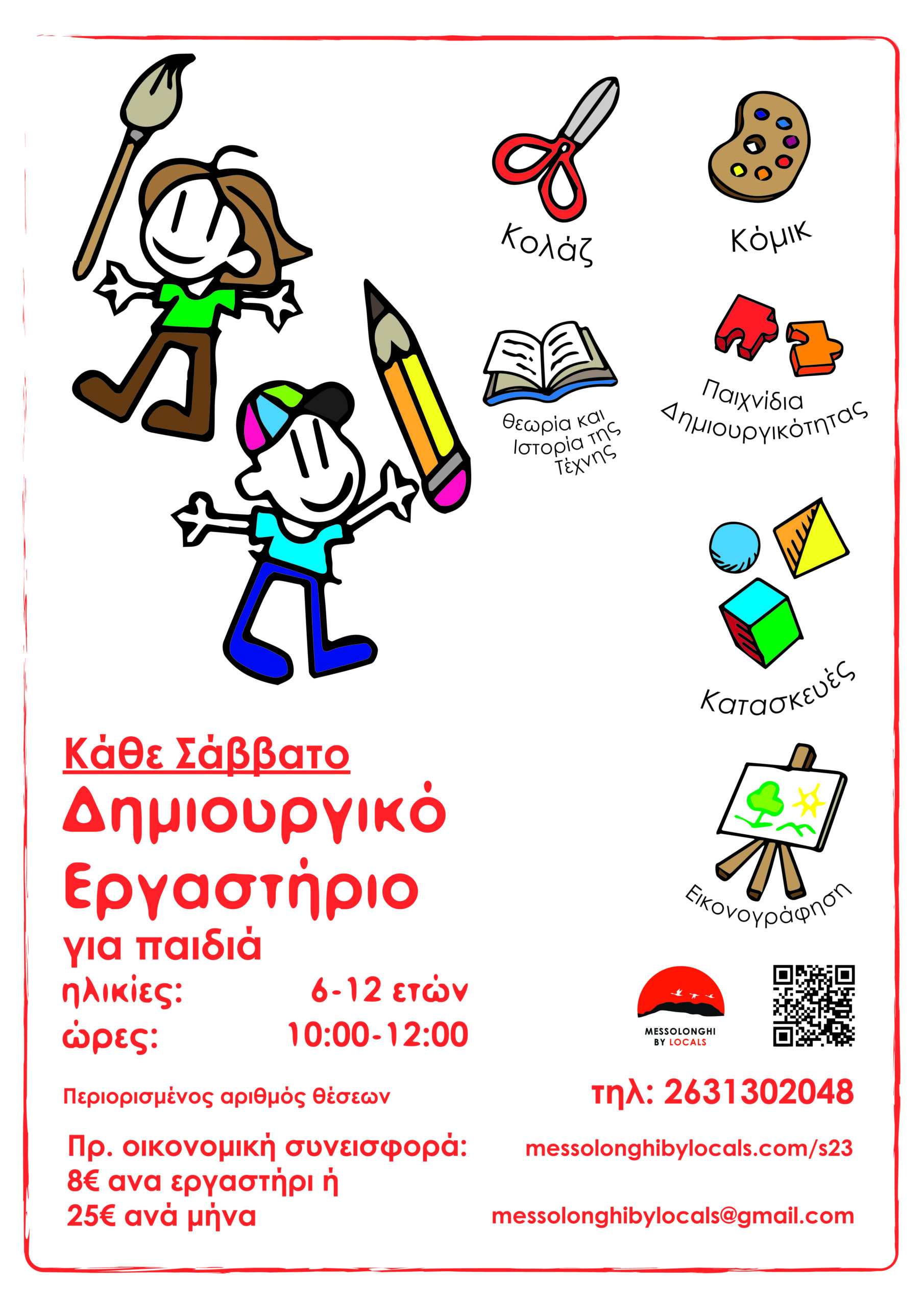 Ξεκινούν τα Δημιουργικά Εργαστήρια στο Messolonghi by Locals, μια σειρά από καλλιτεχνικά εργαστήρια και δραστηριότητες για παιδιά.