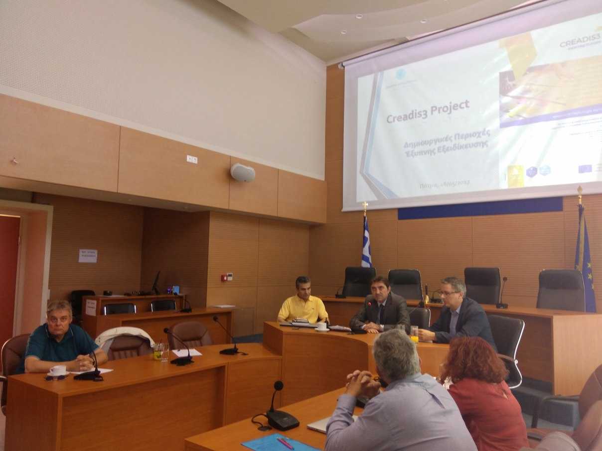 Η πρώτη συνάντηση των τοπικών εταίρων για το ευρωπαϊκό έργο «Δημιουργικές Περιοχές έξυπνης εξειδίκευσης (Smart Specialisation Creative Districts) – CREADIS3» του προγράμματος ΙΝΤΕRREG Europe, πραγματοποιήθηκε στην Πάτρα, στην έδρα της Περιφέρειας Δυτικής Ελλάδας.