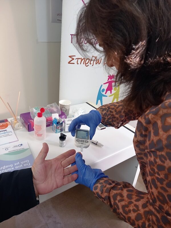 Επίσης, με αφορμή την Παγκόσμια Ημέρα Σακχαρώδη Διαβήτη που τιμάται στις 14 Νοεμβρίου, πραγματοποιήθηκαν στο χώρο του Κοινωνικού Παντοπωλείου δωρεάν μετρήσεις σακχάρου από την νοσηλεύτρια του Κέντρου Κοινότητας με παράρτημα Ρομά σε ωφελούμενους της δομής ενώ στελέχη του Κοινωνικού Παντοπωλείου και του Κέντρου Κοινότητας τους μοίρασαν έντυπο ενημερωτικό υλικό για τους κινδύνους του Σακχαρώδη Διαβήτη.