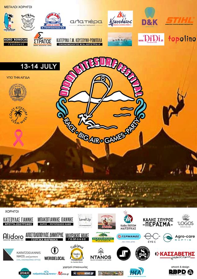 Ο Δήμος Ιερής Πόλης Μεσολογγίου, το Τοπικό Συμβούλιο Κατοχής, ο Σύλλογος Γυναικών Κατοχής «Αλθαία» και η άτυπη ομάδα «West Coast Kitesurf Team», συνδιοργανώνουν για 8η συνεχή χρονιά στις 13 και 14 Ιουλίου 2024 το Φεστιβάλ Αετοσανίδας στο Διόνι Κατοχής Μεσολογγίου.