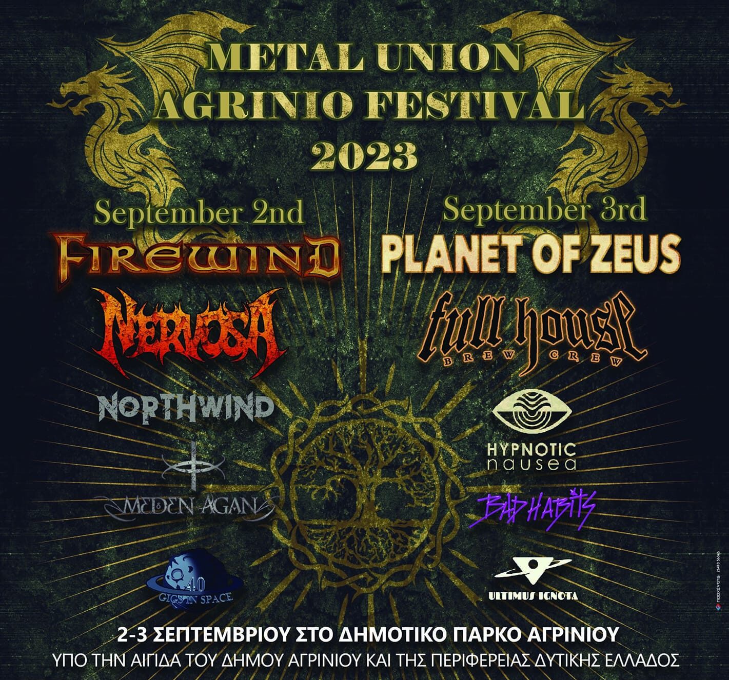 Η power metal μηχανή που ακούει στο όνομα Firewind, υπό την καθοδήγηση του διάσημου Έλληνα κιθαρίστα Gus G. (Ozzy Osbourne) έρχεται για να παραδώσει μαθήματα δυναμισμού και μελωδίας, έχοντας στις πλάτες της πολύχρονη δισκογραφική και συναυλιακή παρουσία. Μαζί τους, το γυναικείο συγκρότημα των Nervosa, μια ανερχόμενη δύναμη στο thrash metal, μετά από ένα βαρύ καλοκαιρινό live πρόγραμμα που συμπεριλαμβάνει και το Wacken Open Air, θα ανέβουν στη σκηνή του φεστιβάλ για μια καθηλωτική εμφάνιση. Special guests οι βετεράνοι της ελληνικής heavy metal σκηνής Northwind, για πρώτη φορά στην πόλη μας, θα ερμηνεύσουν κομμάτια από τους κλασικούς τους δίσκους και την τελευταία τους δουλειά, που κυκλοφόρησε το 2020 με τον τίτλο “History”. Οι παλιοί γνώριμοι για την πόλη μας Meden Agan δε χρειάζονται ιδιαίτερες συστάσεις, καθώς είναι γνωστοί για τα ποιοτικά live που δίνουν. Τέλος, τη συναυλία θα ανοίξουν οι Αγρινιώτες 40 Gigs In Space, αποτελούμενοι από γνωστά μέλη της τοπικής hard rock σκηνής.