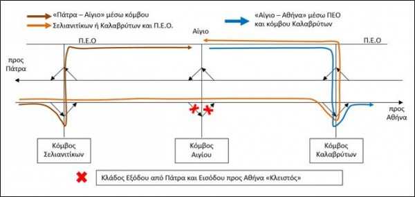 – Η κυκλοφορία με κατεύθυνση από Αίγιο προς Αθήνα θα εξυπηρετείται μέσω της ΠΕΟ και εν συνεχεία θα εισέρχεται από τον κλάδο εισόδου του Κόμβου Καλαβρύτων
