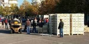 Η ποσότητα που διανεμήθηκε σήμερα ήταν 23 τόνοι σε δικαιούχους του Κοινωνικού Παντοπωλείου και μάλιστα οι δικαιούχοι τα παραλάμβαναν συσκευασμένα σε σακούλες.