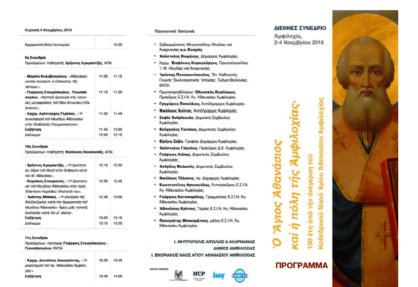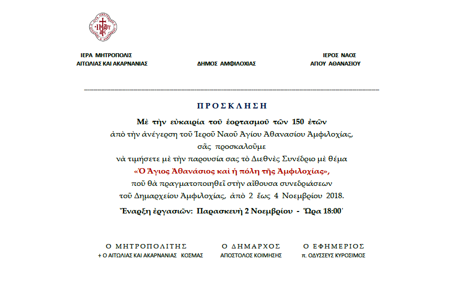 Διεθνές Συνέδριο «Ο Άγιος Αθανάσιος και η πόλη της Αμφιλοχίας»