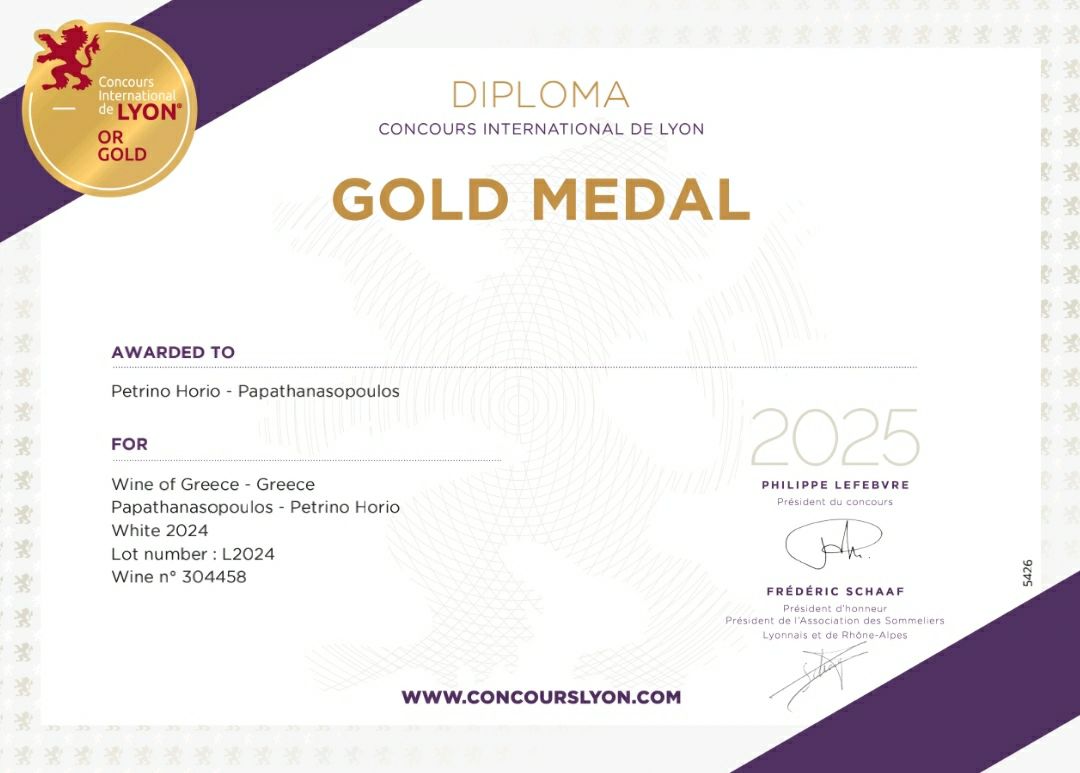 Η νέα σοδειά 2024 της Μαλαγουζιάς “Πέτρινο Χωριό” κατέκτησε Χρυσό Βραβείο στον Διεθνή Διαγωνισμό κρασιών της Λυόν, “Concours International de Lyon 2025”, φέρνοντας διεθνή αναγνώριση στο εξαιρετικό αυτό προϊόν.