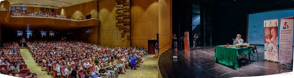 Στο κατάμεστο Πνευματικό Κέντρο του Δήμου Ιωαννιτών οι θαυμαστές του είχαν την ευκαιρία να ακούσουν και να δουν από κοντά τον πασίγνωστο συγγραφέα να αφηγείται με το δικό του μοναδικό τρόπο ένα παραμύθι του, επικοινωνώντας κατά τη διάρκειά του με τα παιδιά.