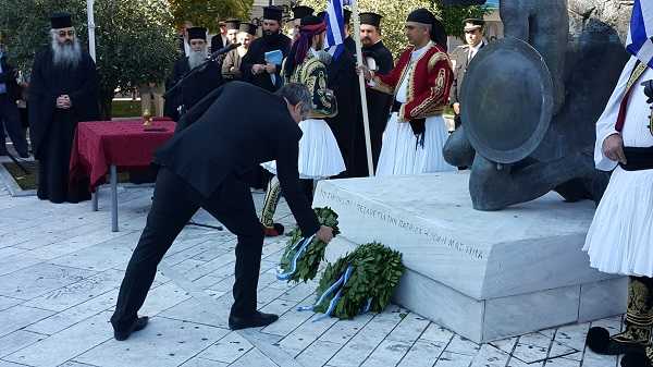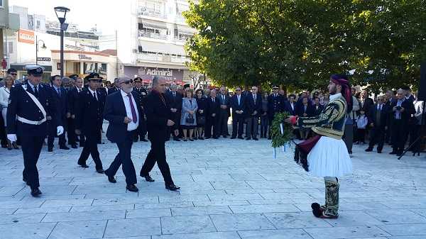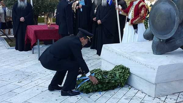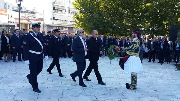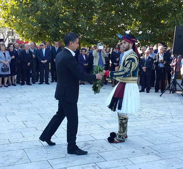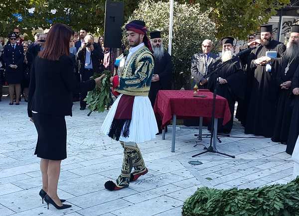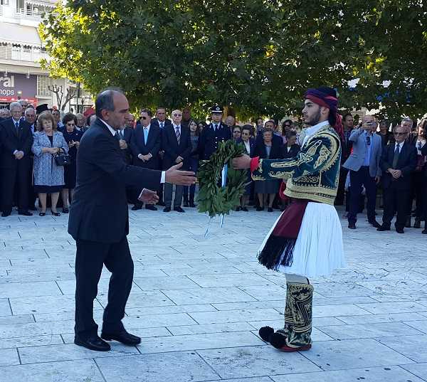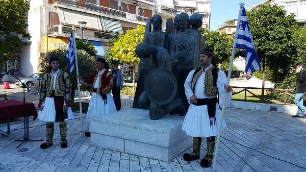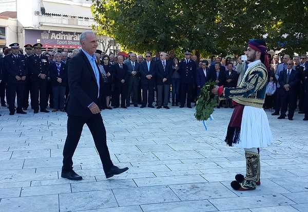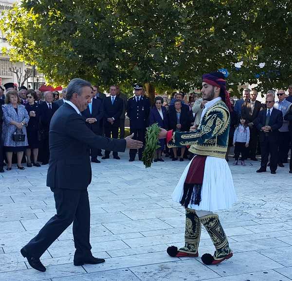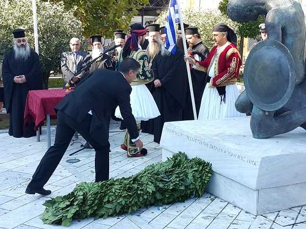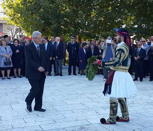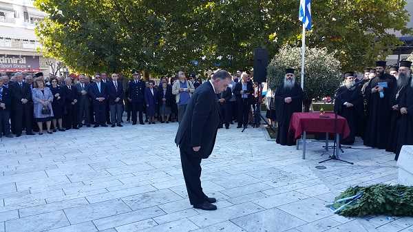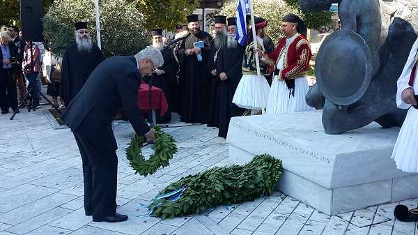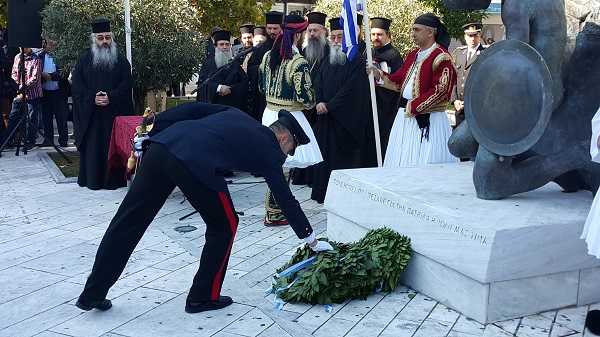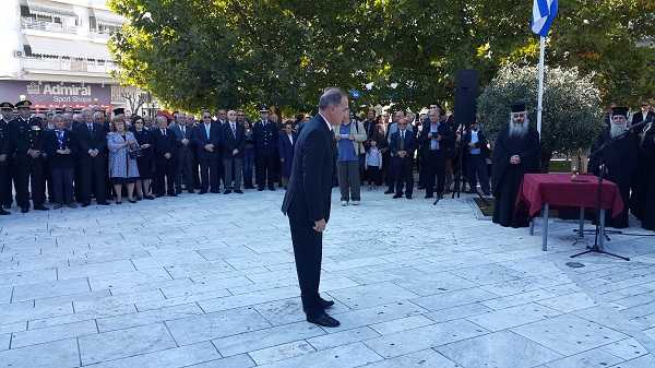 Κατόπιν, πραγματοποιήθηκε κατάθεση στεφάνων από τις Αρχές στο μνημείο των πεσόντων στην πλατεία Δημάδη με την Φιλαρμονική Ορχήστρα του Δήμου Αγρινίου να παιανίζει.
