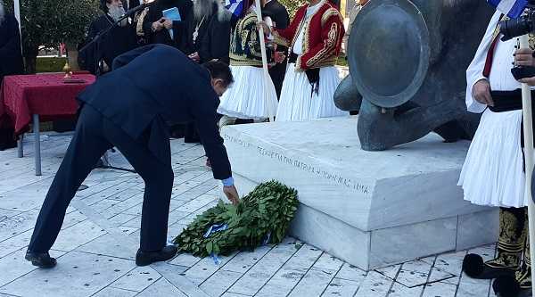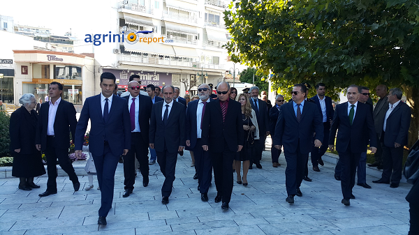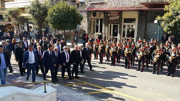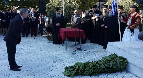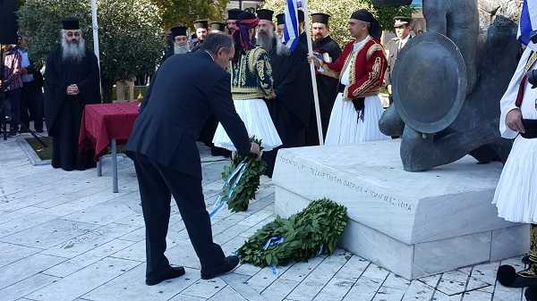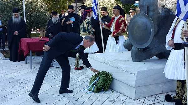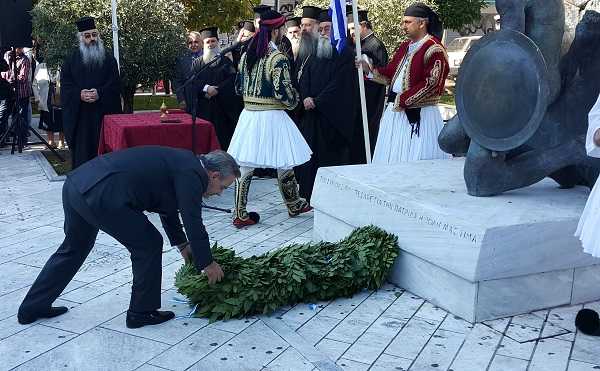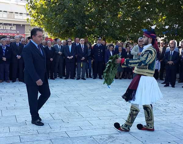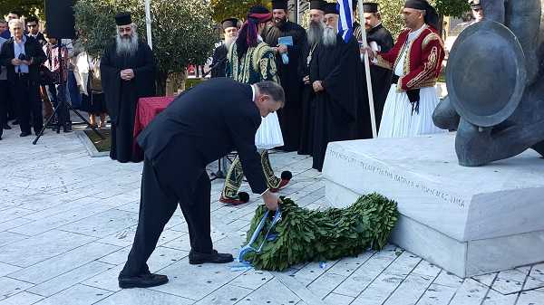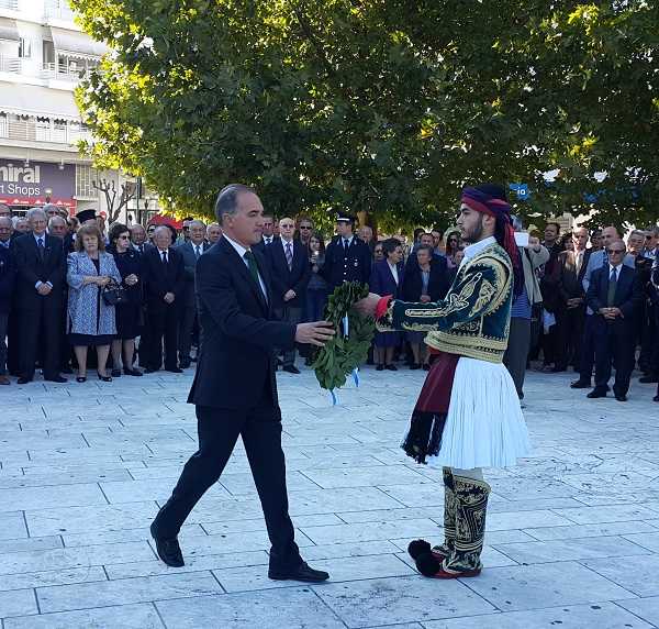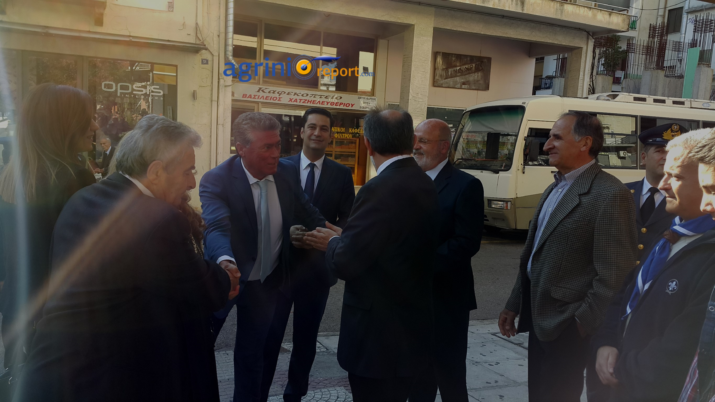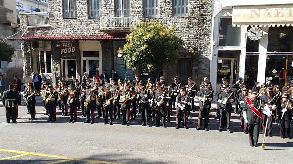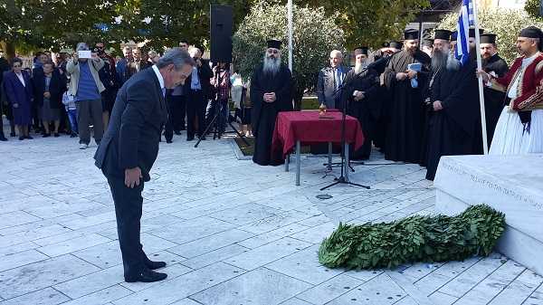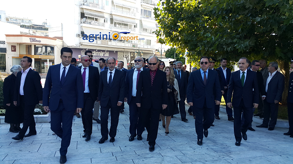 Κατόπιν, πραγματοποιήθηκε κατάθεση στεφάνων από τις Αρχές στο μνημείο των πεσόντων στην πλατεία Δημάδη με την Φιλαρμονική Ορχήστρα του Δήμου Αγρινίου να παιανίζει.