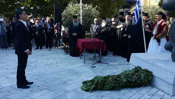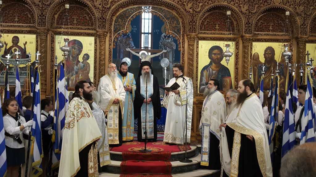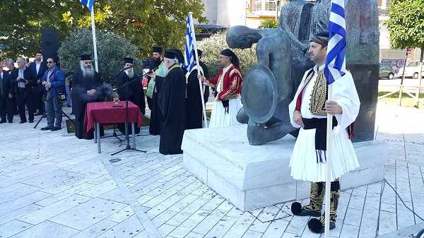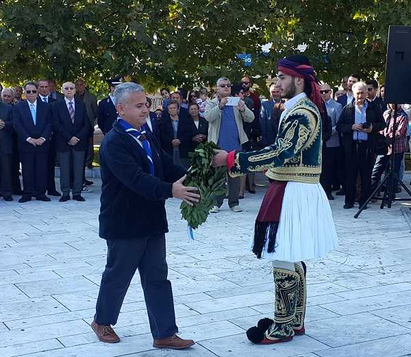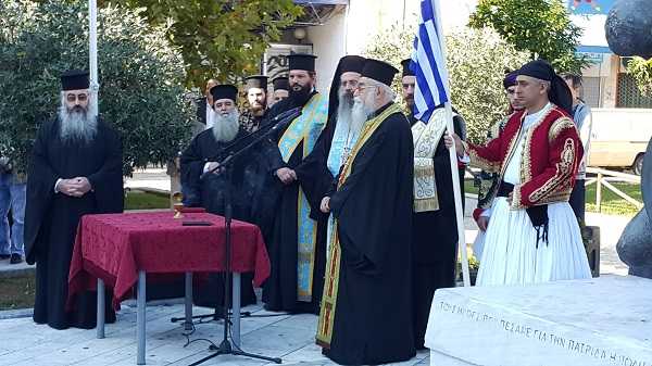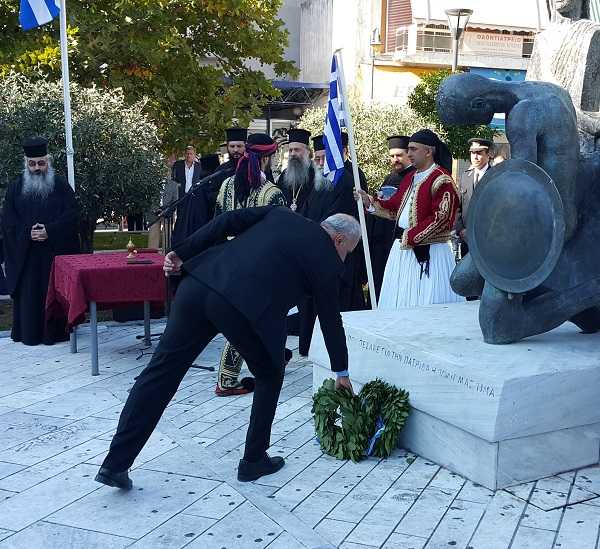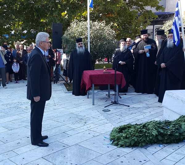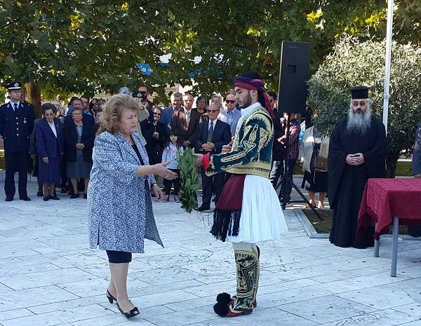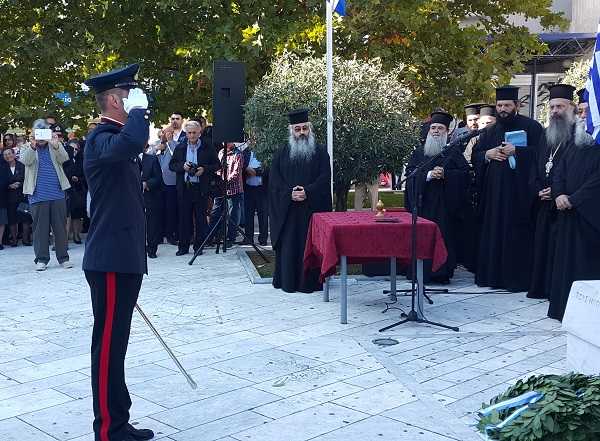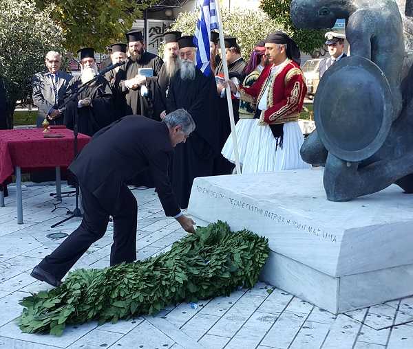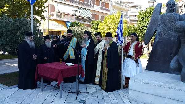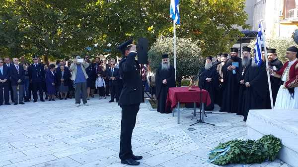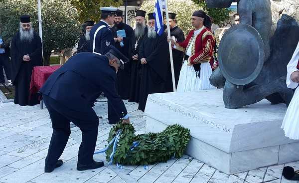 Στα πλαίσια των πολιτιστικών και θρησκευτικών εκδηλώσεων για τον εορτασμό της επετείου της 28ης Οκτωβρίου πραγματοποιήθηκε σήμερα η καθιερωμένη δοξολογία στον Ιερό Ναό Ζωοδόχου Πηγής και κατόπιν κατάθεση στεφάνων στην πλατεία Δημάδη στο μνημείο των πεσόντων.