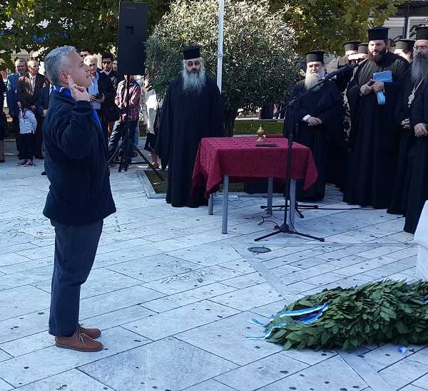 Μετά το τέλος της δοξολογίας ο κ. Αθανάσιος Σαρδέλης, εκπαιδευτικός φιλόλογος του 3ου ΓΕ.Λ. Αγρινίου εκφώνησε τον πανηγυρικό της ημέρας.