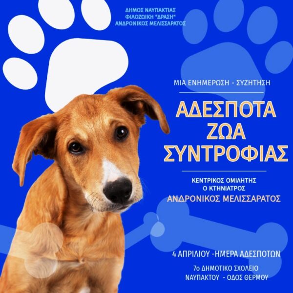 Ο Δήμος Ναυπακτίας με αφορμή την 4η Απριλίου – Παγκόσμια Ημέρα Αδέσποτων Ζώων υλοποιεί σε συνεργασία με το Σωματείο Φιλοζωικής Δράσης Ναυπάκτου δράσεις ενημέρωσης και ευαισθητοποίησης των πολιτών.