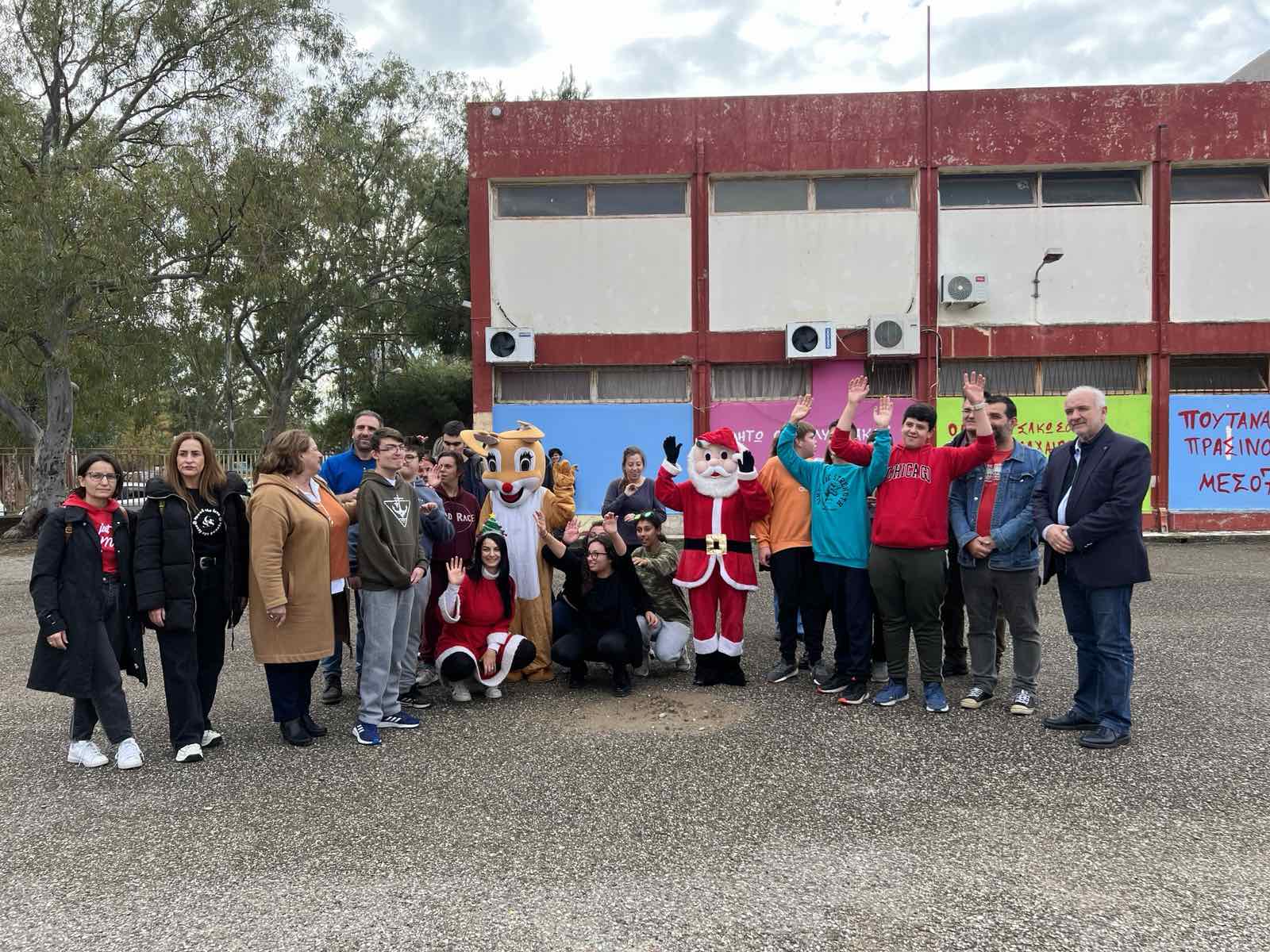 Στο πλαίσιο αυτό, ο Δήμαρχος Ι.Π. Μεσολογγίου με κεντρικό μήνυμα την πλήρη συμμετοχή και ισότητα, την αλληλεγγύη και τον αλληλοσεβασμό, παραβρέθηκε με τα στελέχη των κοινωνικών δομών του Δήμου, Κέντρο Κοινότητας και Κοινωνικό Παντοπωλείο του Αυτοτελούς Τμήματος Κοινωνικής Προστασίας, την Παρασκευή 1η Δεκεμβρίου 2023, στο Ενιαίο Ειδικό Επαγγελματικό Γυμνάσιο – Λύκειο Μεσολογγίου του Δήμου μας και σε συνεργασία με τον Διευθυντή κ. Πατρόπουλο Αθανάσιο, τους εκπαιδευτικούς και τους μαθητές, συμμετείχαν στις Χριστουγεννιάτικες δραστηριότητες των παιδιών.