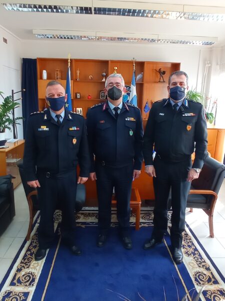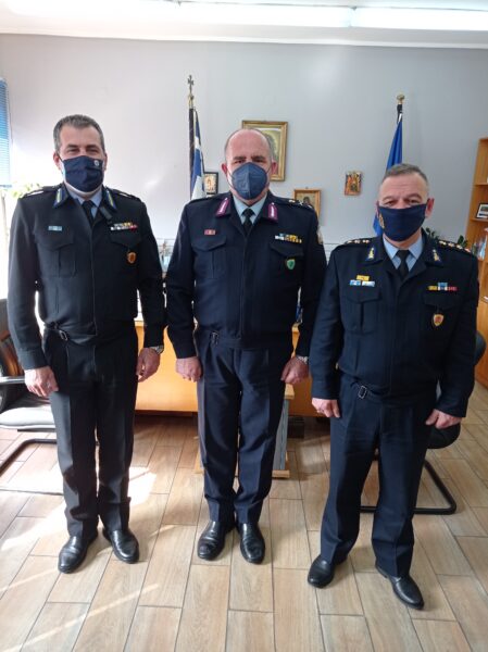 Ο Περιφερειακός Διοικητής της Πυροσβεστικής Υπηρεσίας Δυτικής Ελλάδας, Αρχιπύραρχος Χριστόφορος Μπόκας και ο Διοικητής Πυροσβεστικών Υπηρεσιών Αχαΐας, Πύραρχος Βασίλειος Σολδάτος, με αφορμή την πρόσφατη ανάληψη των καθηκόντων τους, επισκέφθηκαν σήμερα (15-2-2022) το μεσημέρι, τη Γενική Περιφερειακή Αστυνομική Διεύθυνση Δυτικής Ελλάδας, όπου συναντήθηκαν με τον Γενικό Περιφερειακό Αστυνομικό Διευθυντή, Υποστράτηγο Απόστολο Μαρτζάκλη και τον Διευθυντή της Διεύθυνσης Αστυνομίας Αχαΐας, Ταξίαρχο Ιωάννη Κυριακόπουλο.