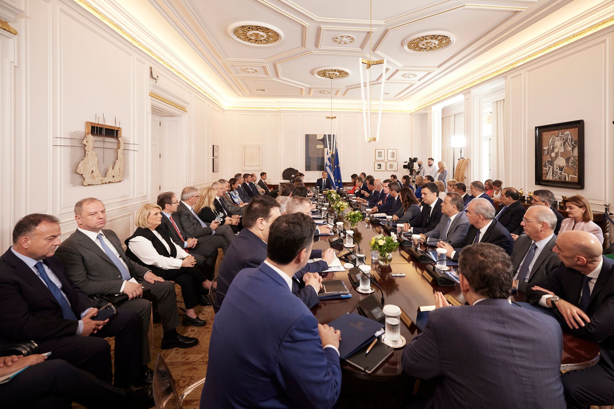 Η πρώτη μας συνεδρίαση πραγματοποιείται στο φως μιας μεγάλης εκλογικής νίκης, θα έλεγα μιας νίκης χωρίς προηγούμενο, γιατί πράγματι δεν υπάρχει άλλο παράδειγμα κυβέρνησης που να κατακτά μία δεύτερη συνεχή τετραετία με αυξημένα ποσοστά και με τεράστιες διαφορές από τους κύριους πολιτικούς της αντιπάλους. Είμαστε περήφανοι αλλά είμαστε και ευγνώμονες στον ελληνικό λαό για την επιλογή του.