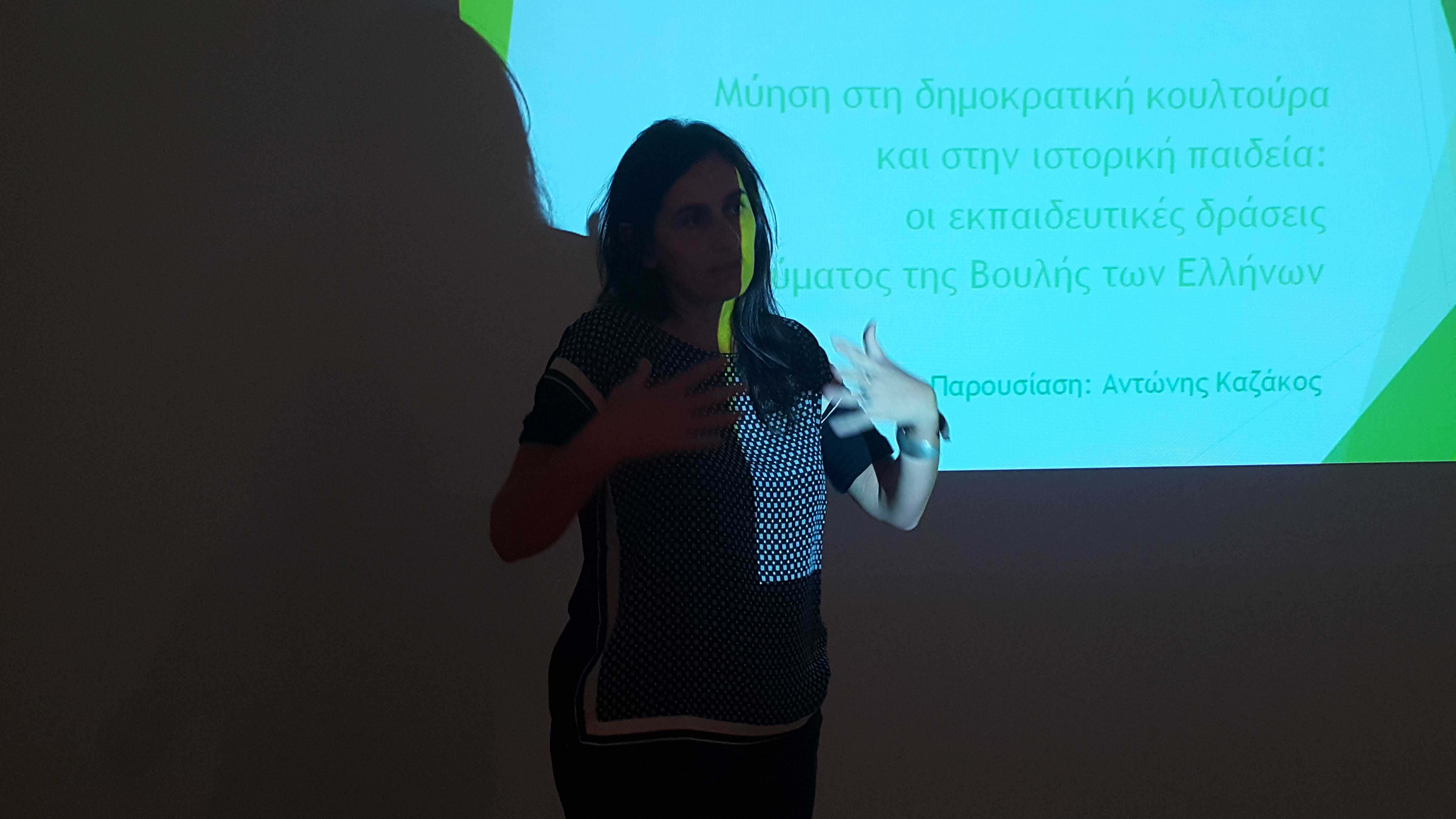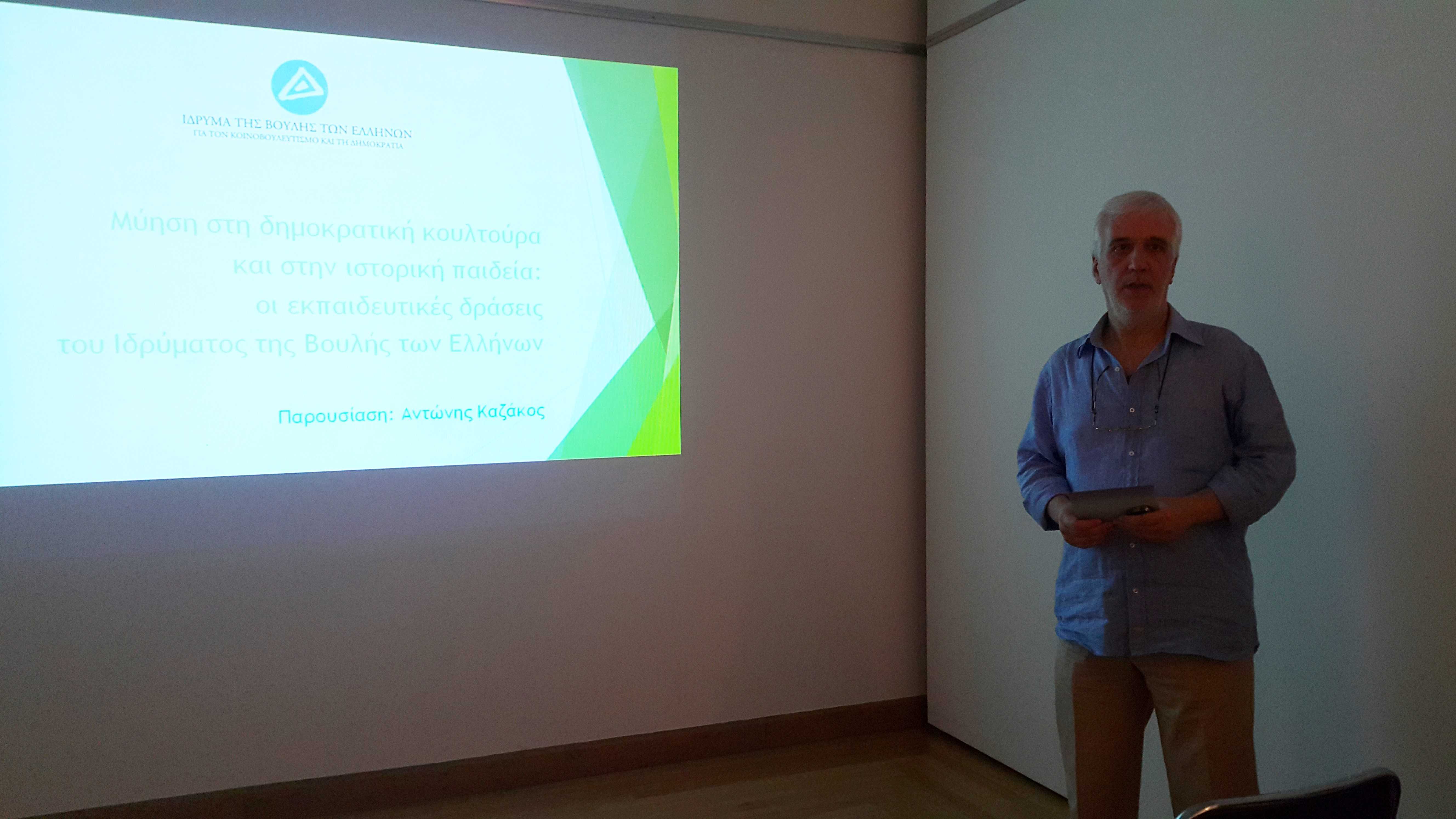 Κεντρικός ομιλητής της εκδήλωσης ήταν ο Υπεύθυνος των Εκπαιδευτικών Προγραμμάτων του Ιδρύματος της Βουλής κ. Αντώνης Καζάκος.